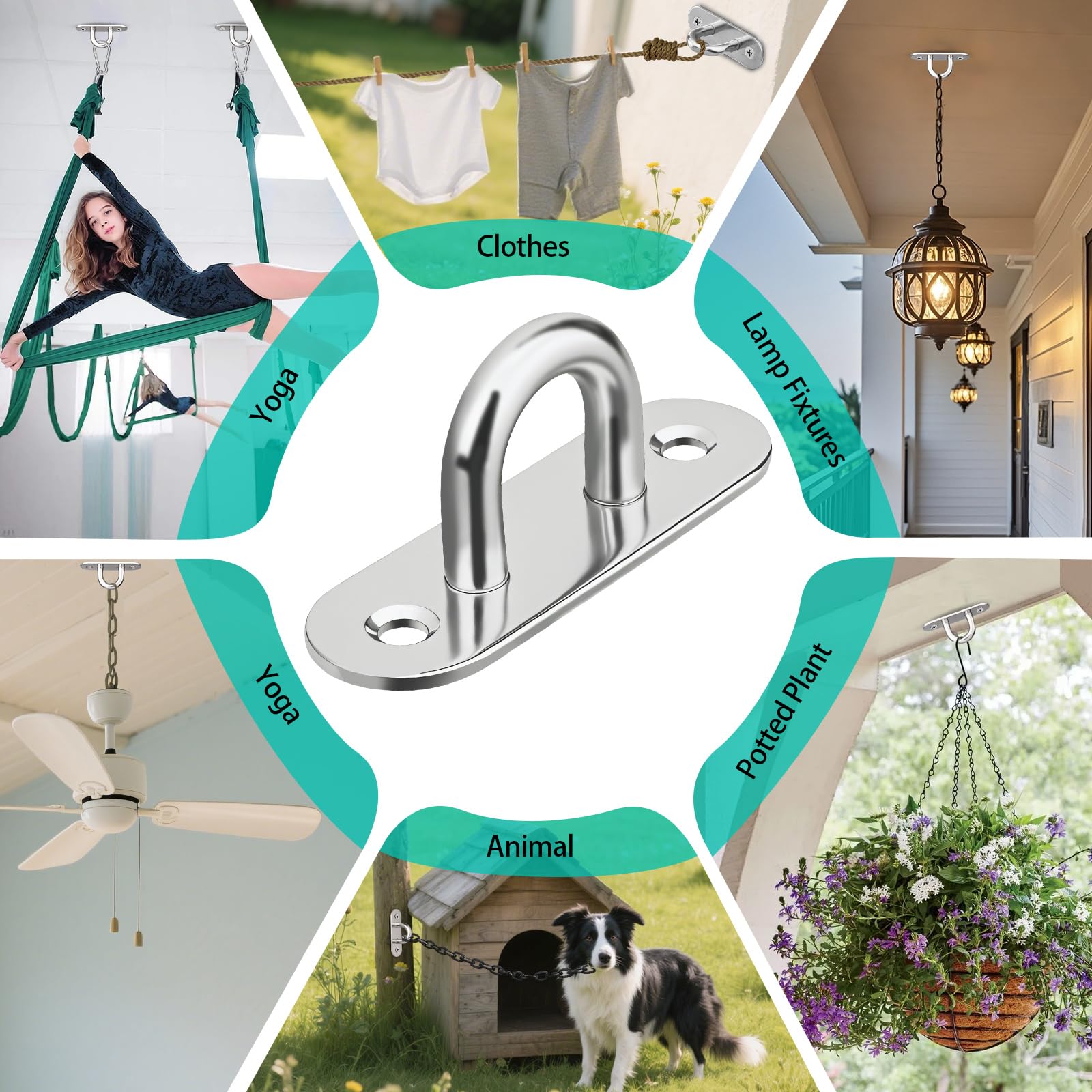 - Various Application: 4 pcs ceiling hooks can be used to hang lamp posts, lamps, chandeliers, plants, clotheslines, etc. It can also be used on small yachts and boats.