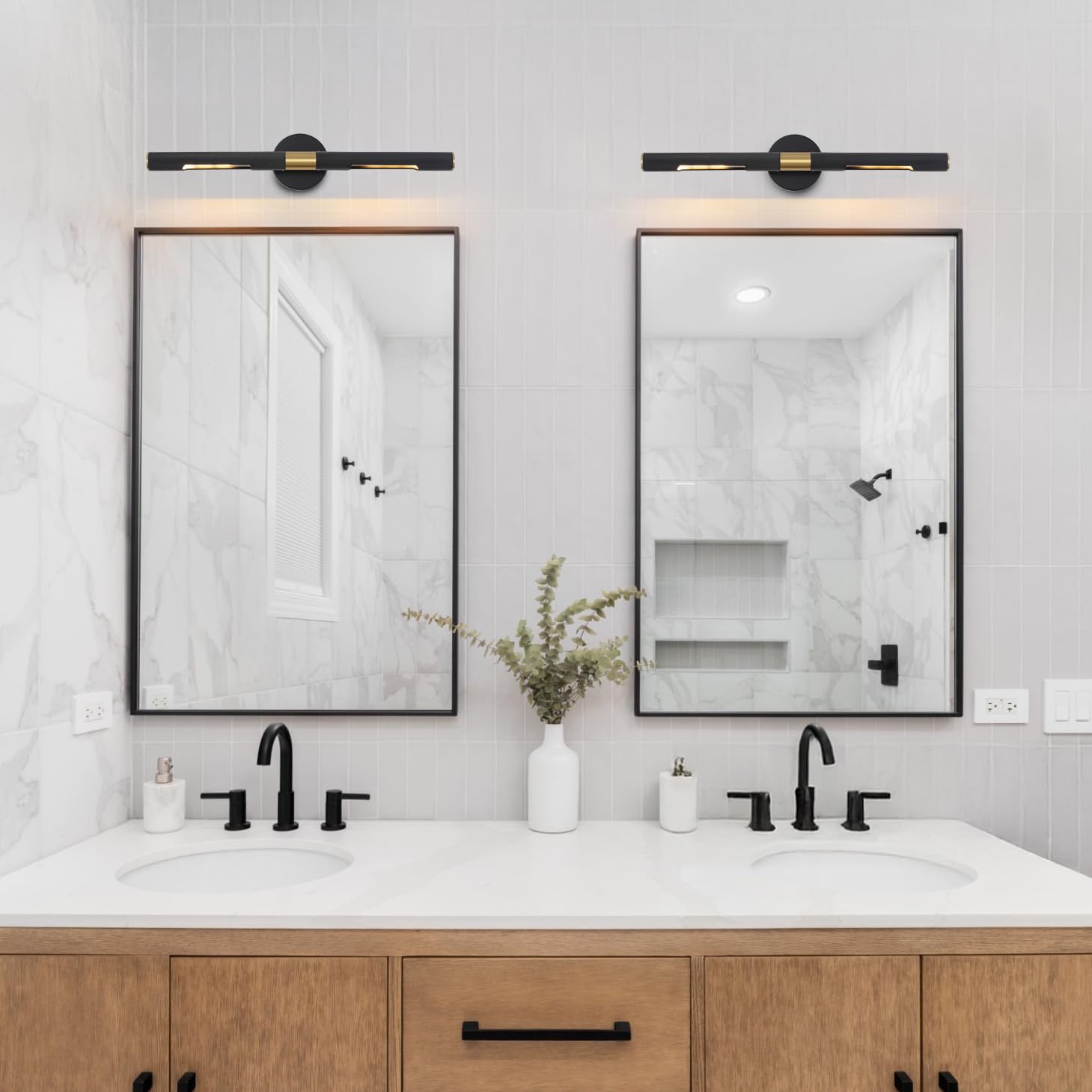 - Perfect Size: Lamp body size: 24'' L x 4.72'' W x 4.33'' H. 4.72" in back-plate diameter. The size of shades is 10.62 "L*1.49 "D. The gold black wall light is Hard-wired,easy to install.