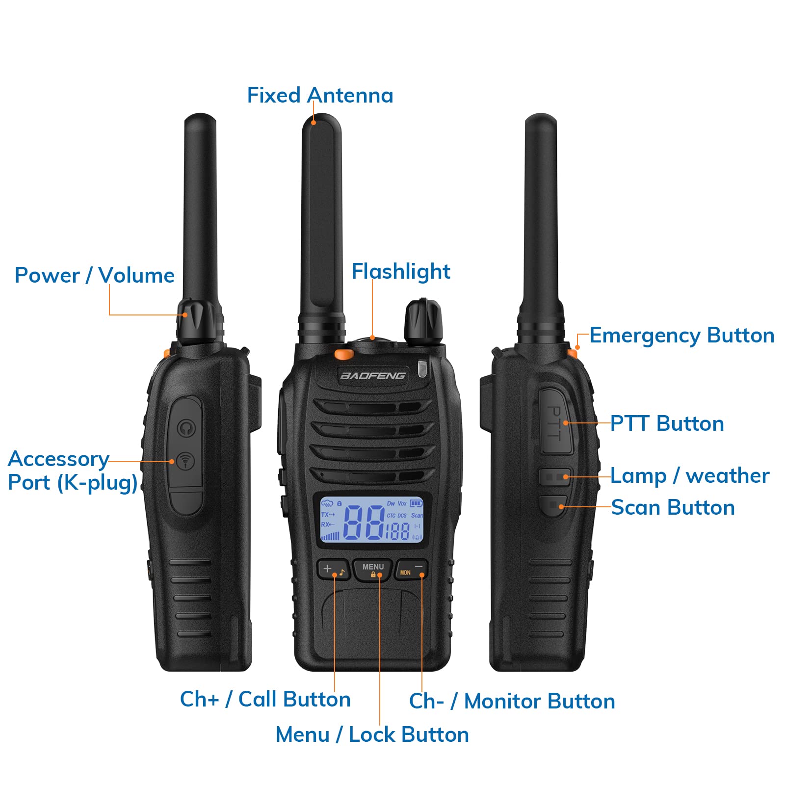 - Upgraded Version: BF-88ST Pro features VOX, dual watch, and other useful features for radio beginners. Program these walkie talkies long range through the keypad and enjoy the easy-to-use interface. FCC ID: 2AJGM-A88