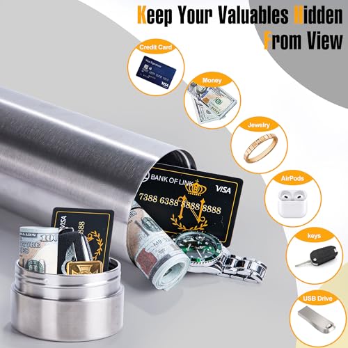 BarGifts 24oz Hidden Safe Water Bottle, Stainless Steel Secret Water Bottle with Hidden Compartment, Bottle Keeps Your Valuables Safe Like Money, Keys, and Jewelry- Silvery