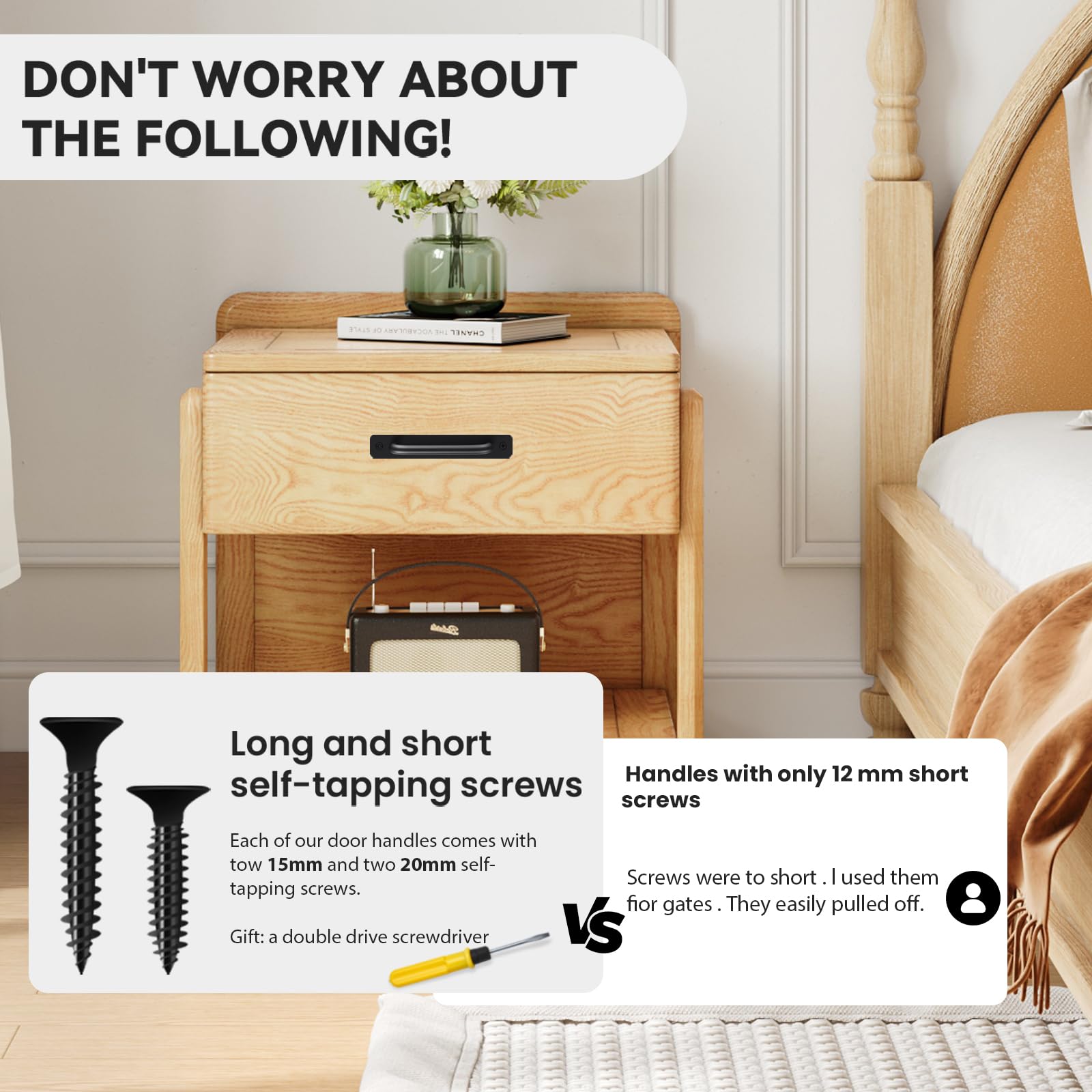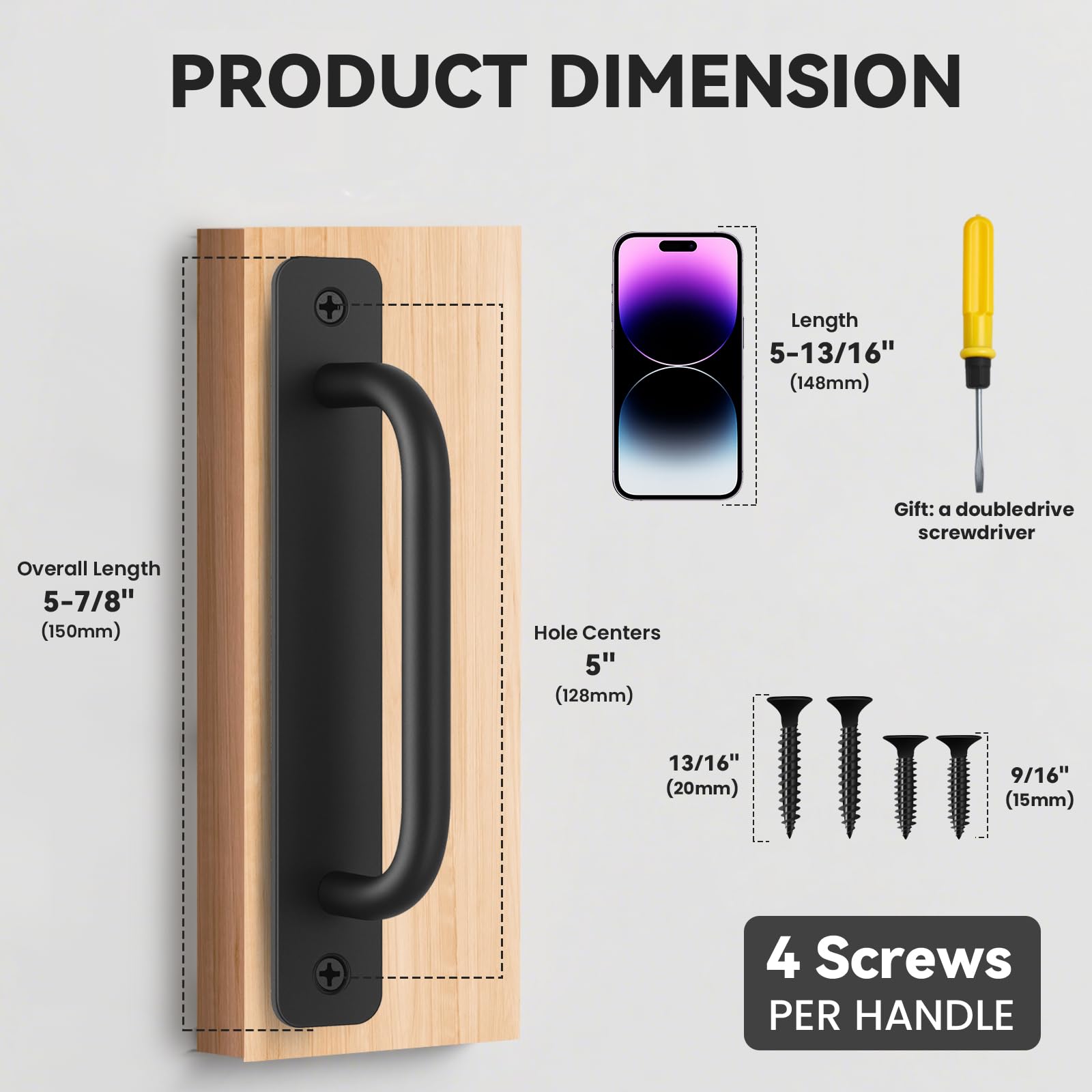 - 【MULTI-SIZE SCREWS】: We conducted a careful market research on black barn door handles and learnt that many users need different lengths of screws to suit different installation environments, so each of our door handles comes with four 1.5cm and four 2cm self-tapping screws. (Gift: a dual-purpose screwdriver)