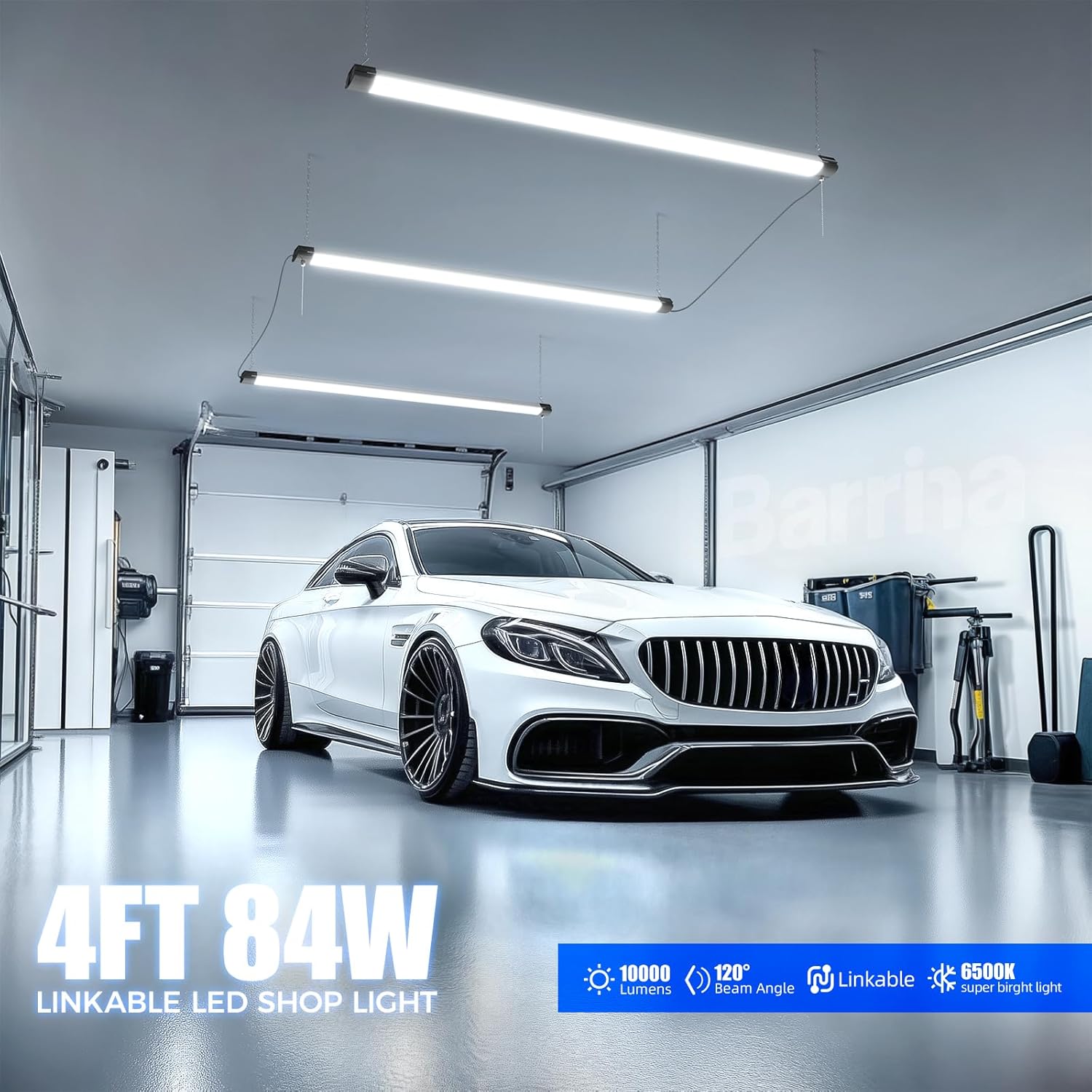 Barrina 10000LM LED Shop Light Fixture - 4FT, 84W, 5000K, Linkable, ETL Approved for Garage & Workshop