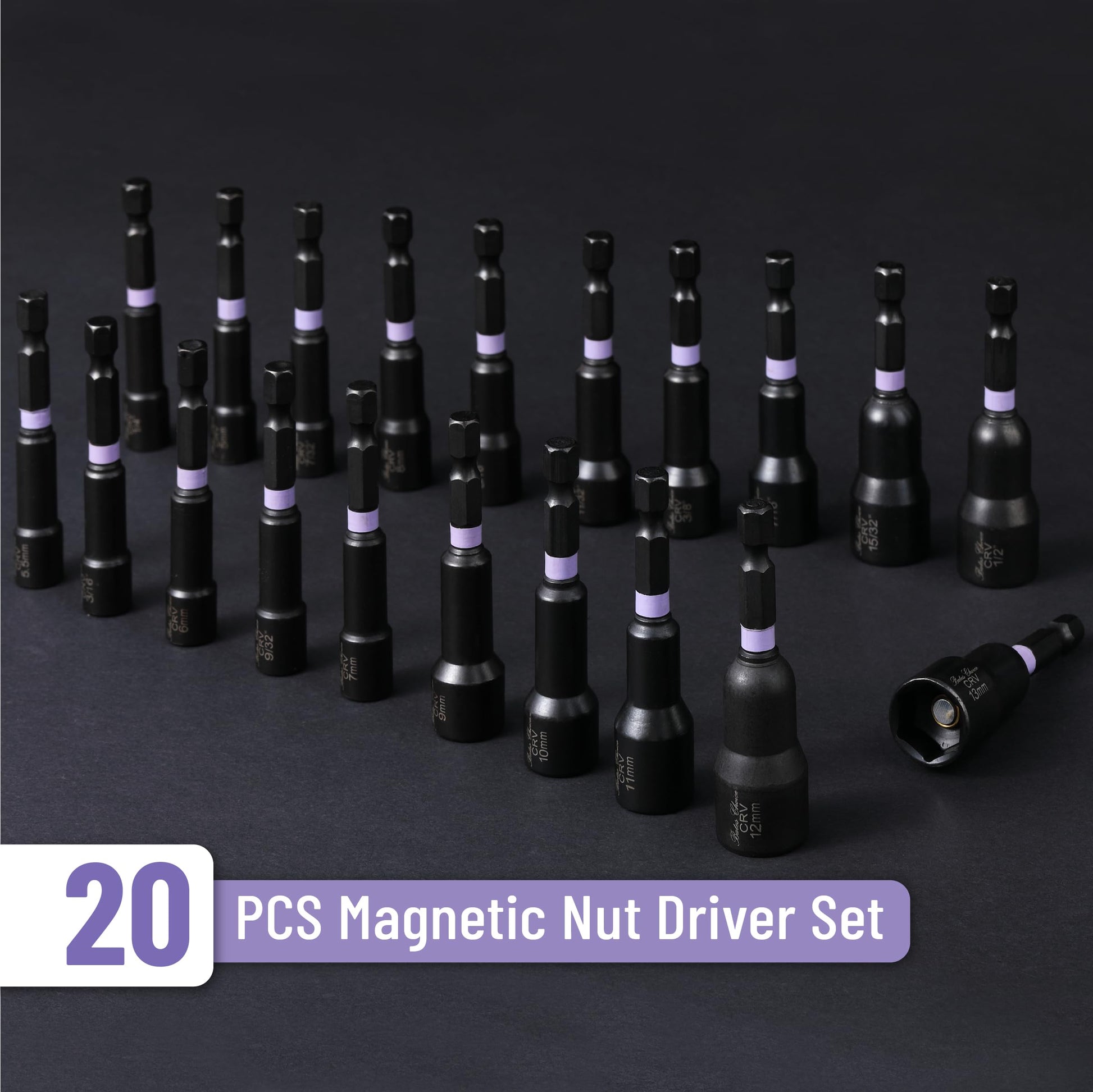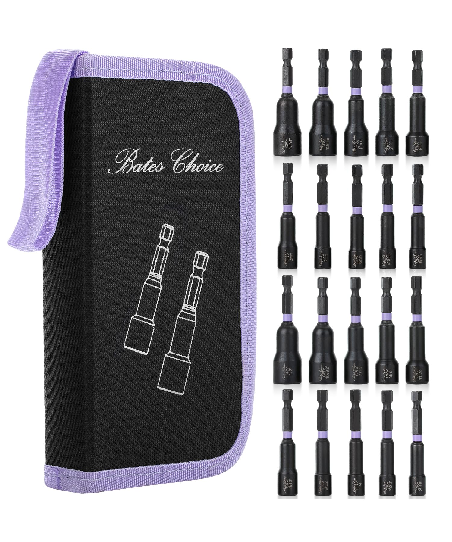 Details: Bates magnetic nut driver set comes with 20 high-quality pieces, providing a versatile solution for fastening tasks in both metric and SAE sizes. Made from durable chrome vanadium steel, these drivers deliver exceptional strength, wear resistance, and long-lasting reliability. The set includes sizes ranging from 5mm to 13mm and 3/16" to 1/2", all compatible with a 1/4" driver, offering flexibility for various applications. Each nut driver features a magnetic tip for secure and efficient fastening, reducing slippage and improving productivity. Organized in a convenient, compact storage case, this set is ideal for professionals and DIY enthusiasts working on automotive, construction, or home improvement projects.