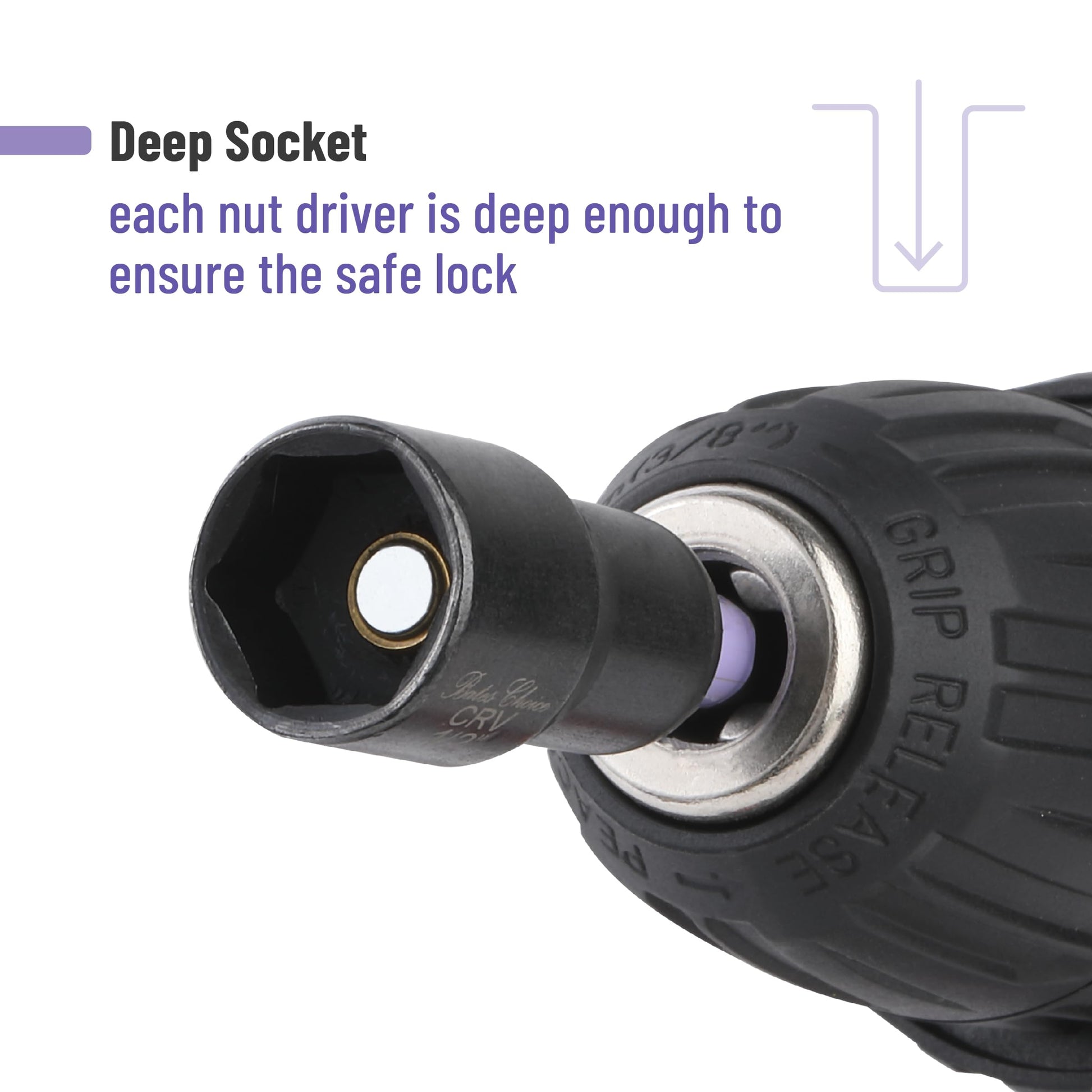 - Each nut driver features a magnetic tip for secure and efficient fastening, reducing slippage and improving productivity.