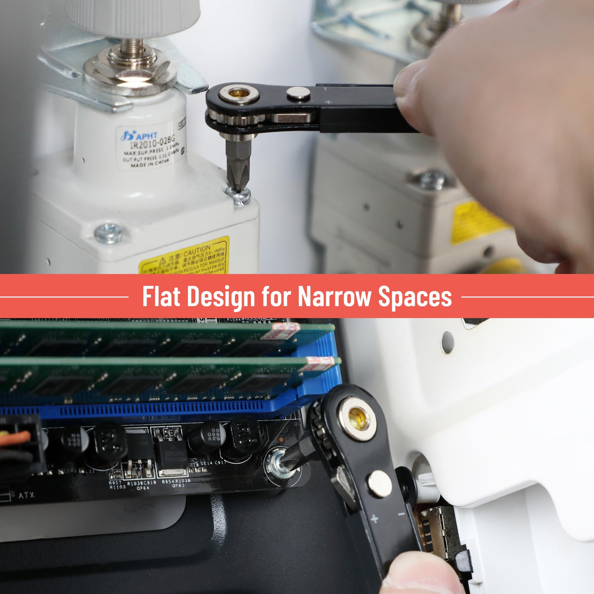- The compact 1/4-inch drive ratchet wrench is designed to fit into tight spaces, making it ideal for precision work and maneuvering in confined areas.