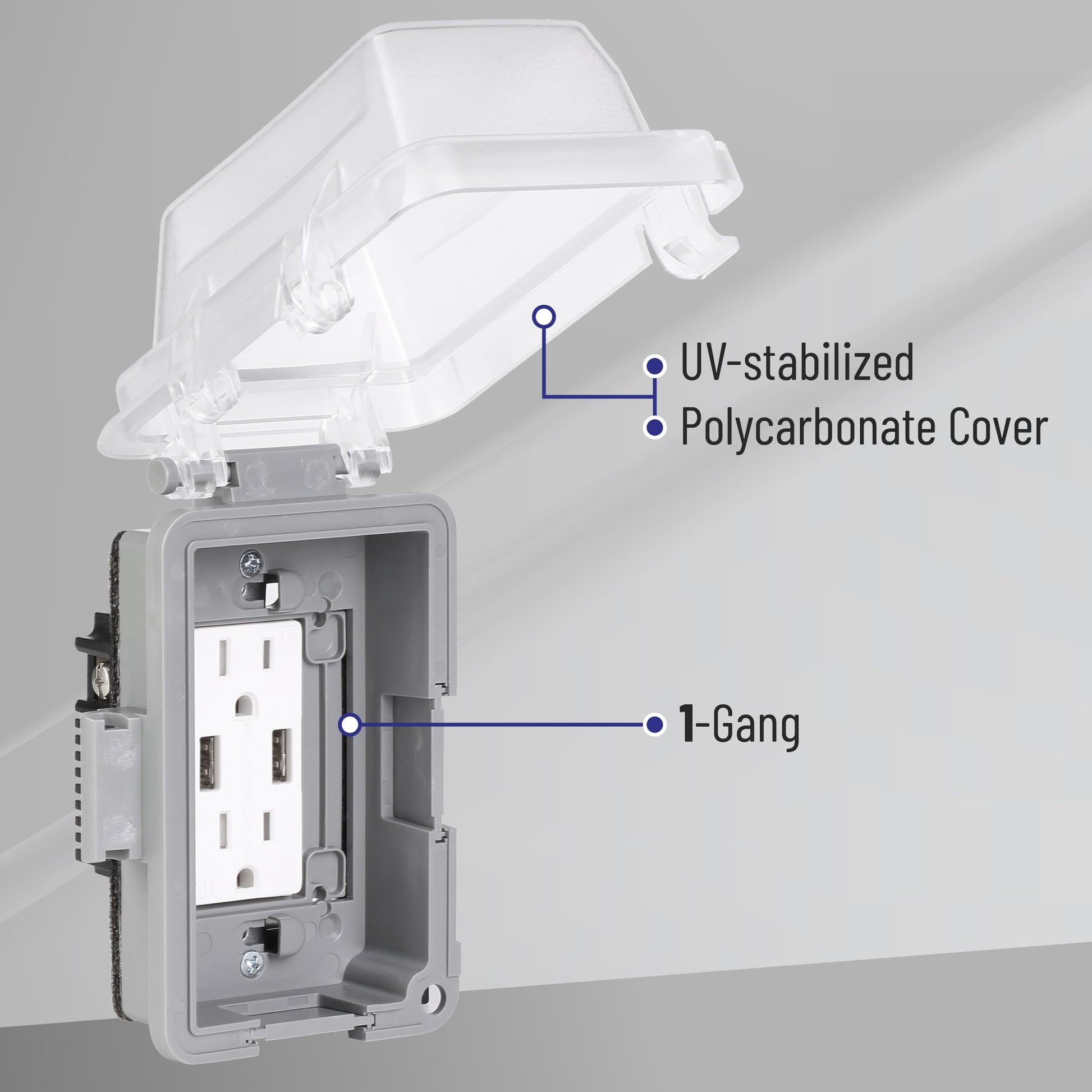 - Made with UV-stabilized polycarbonate, these covers ensure durability and resistance to sun damage, keeping your outlets safe and functional.