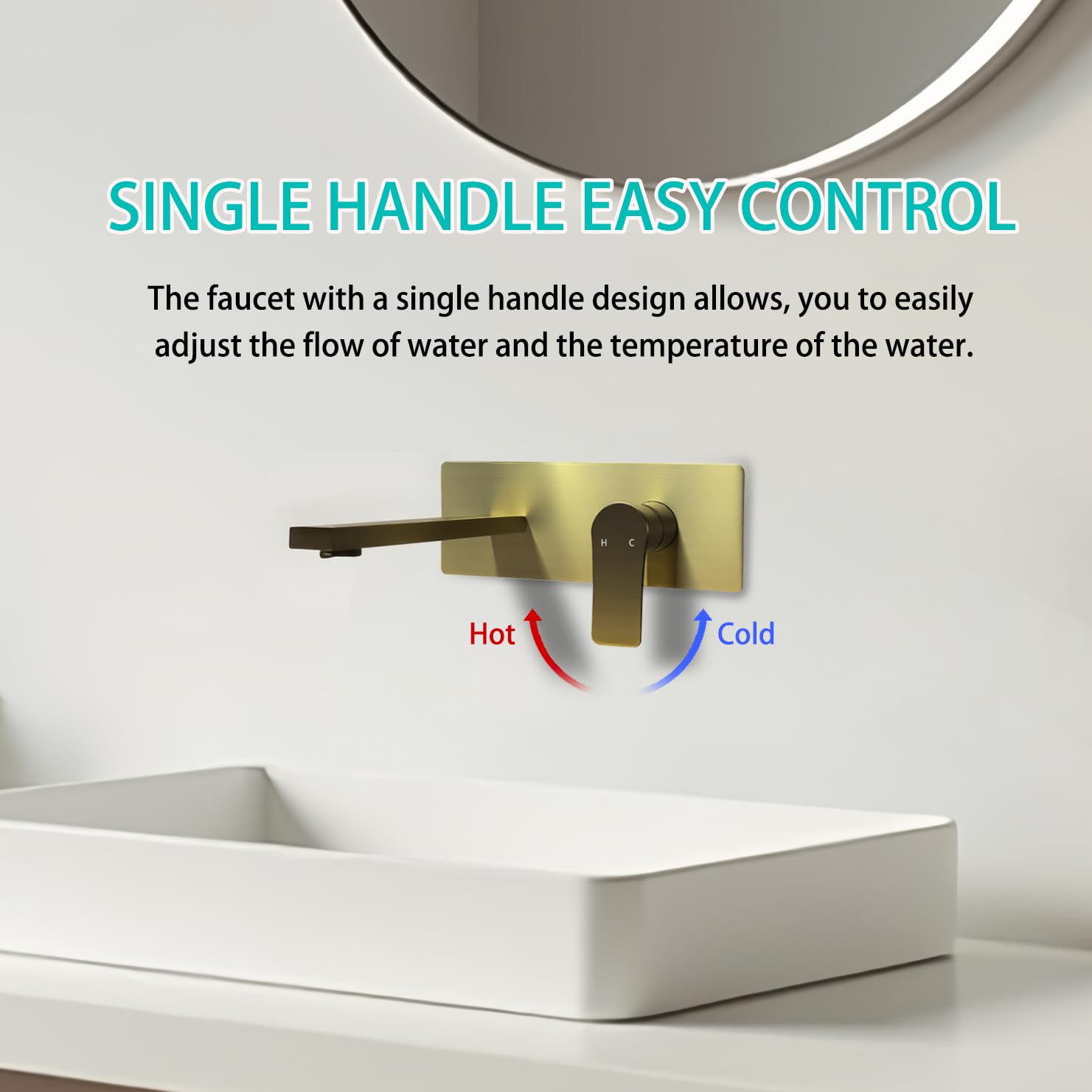 - 【Easy to Install】Our wall mounted basin faucet is designed for standard 1/2-inch US (1/2NPT) pipe connections and comes with an integrated embedded body, panel, nozzle, handle, accessories, and installation manual. It is easy to install and can save labor costs during the installation process