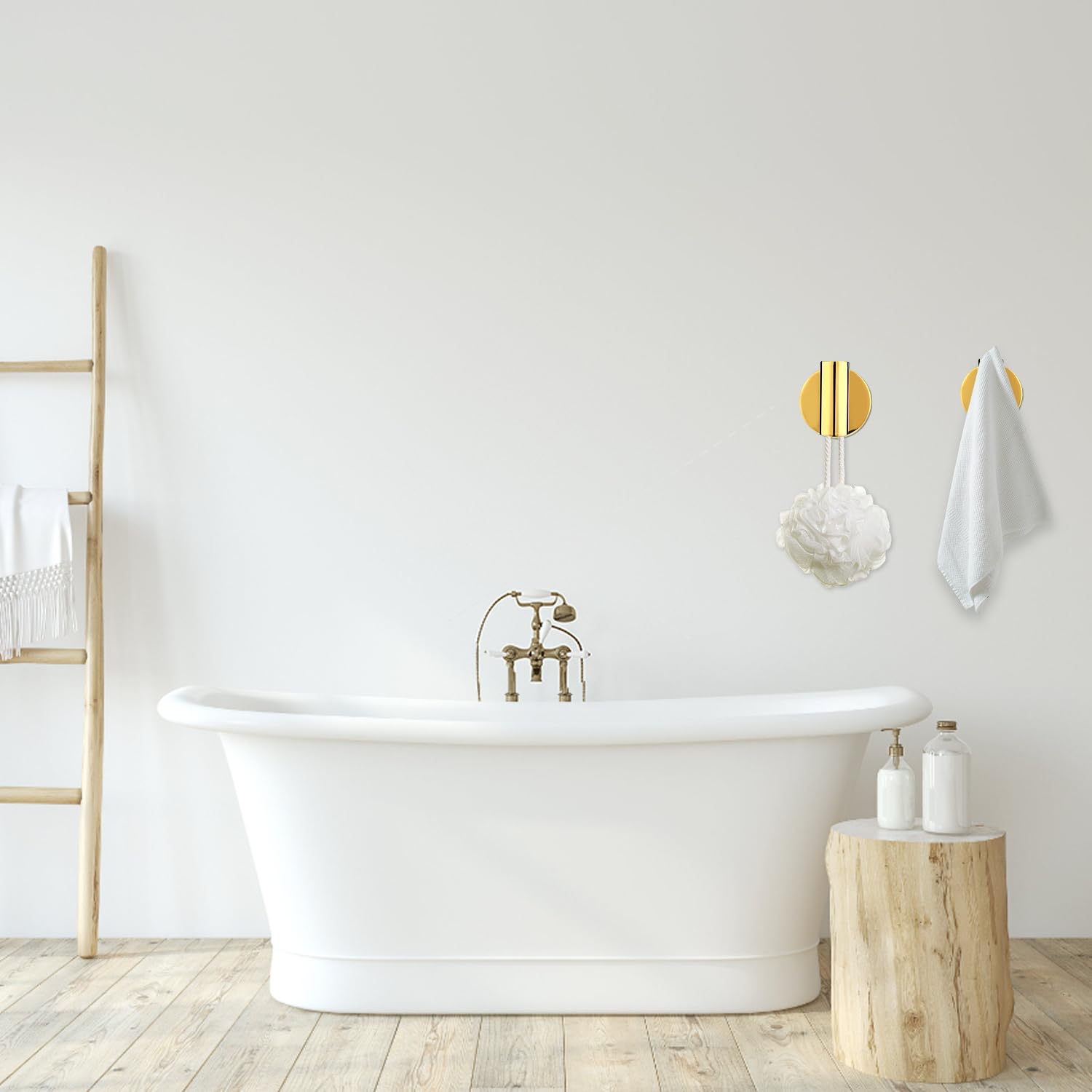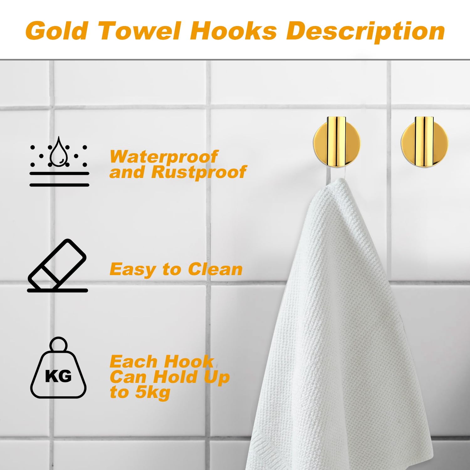 Bathroom Robe Towel Hooks Wall Hook Holder Heavy Duty Door Hanger Towel Robe Clothes Cabinet Closet Sponges Hook for Bathroom Bedroom Kitchen Hotel Pool 4 Packs(Bright Gold)