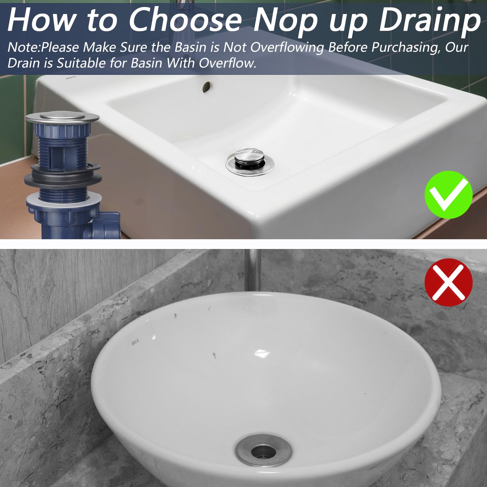 With Over Flow Fits Bathroom Vanity Sink with A Drain Hole Diameter of 1-1/2” or 1-3/4”