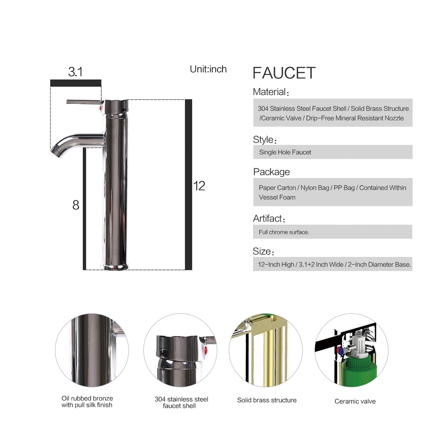 - 【Come with All You Need】Unlike other brand that provide only the sink, our Vessel Sink comes with a chrome faucet, chrome pop-up drain, cold and hot water lines, and a screw packet. No need to spend extra money on other accessories!