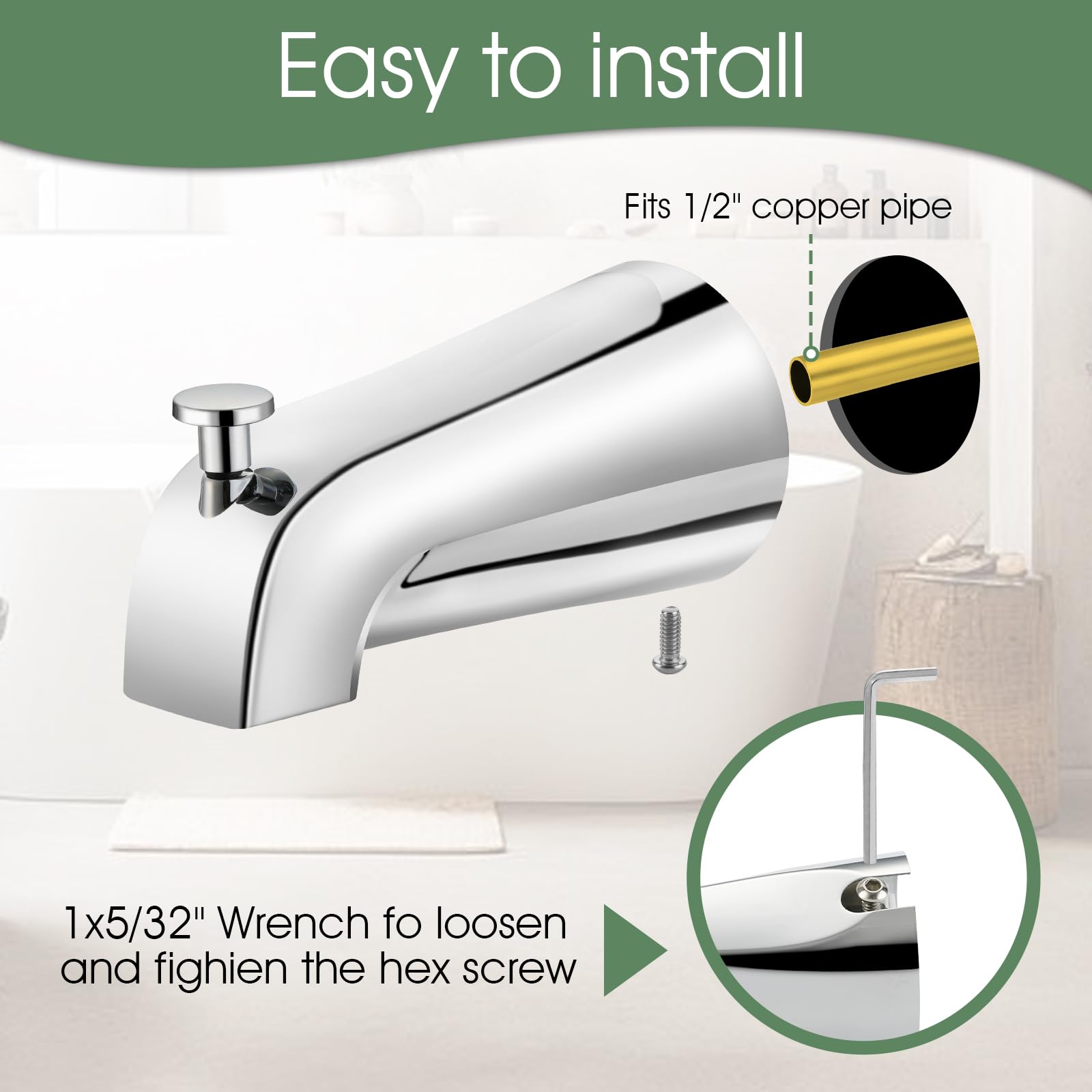 Bathtub Faucet Replacement with Diverter,Easy to Install American Standard Tub Spout for 1/2" Copper Water Tube with Install Tool (Chrome)