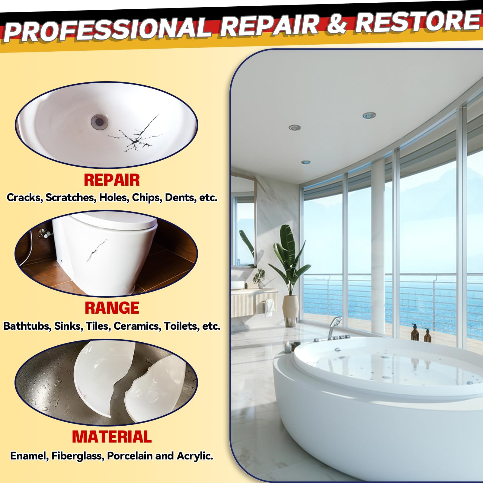 - Excellent After-sales Service: Don't let minor damages escalate, use the crack tub repair kit for professional repair at the lowest cost! If you encounter any issues with the porcelain sink repair, whether it's due to spillage, incomplete accessories, product hardening, or shipping damage, please contact us in time, we promise we will give you a satisfactory solution after we confirm it