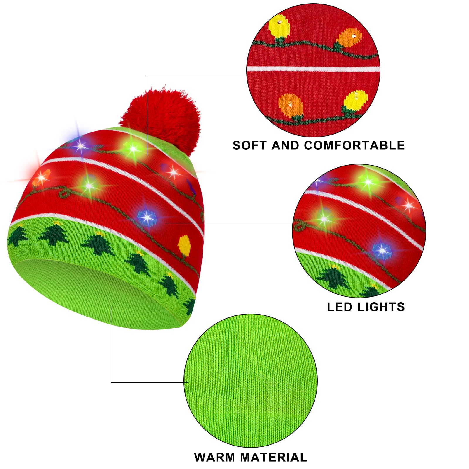 - You will Get: A light up knitted beanie hat and a pair of novelty socks with a cute classic Christmas string light/Christmas tree pattern; celebrate your Christmas and New Year's party and light up the holiday season