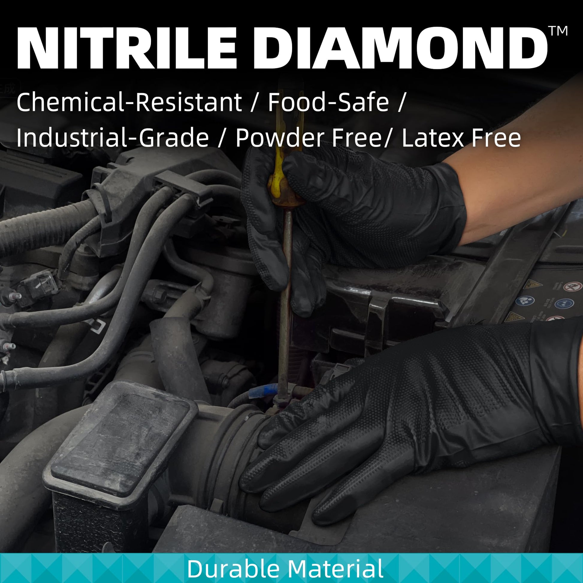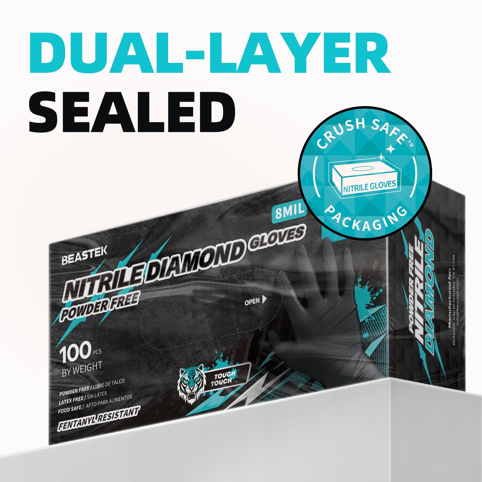 Beastek Nitrile Disposable Gloves, 8Mil Latex & Powder Free Chemical Resistant Heavy Duty Cooking Diamond Gloves Black 100Pcs (Large)