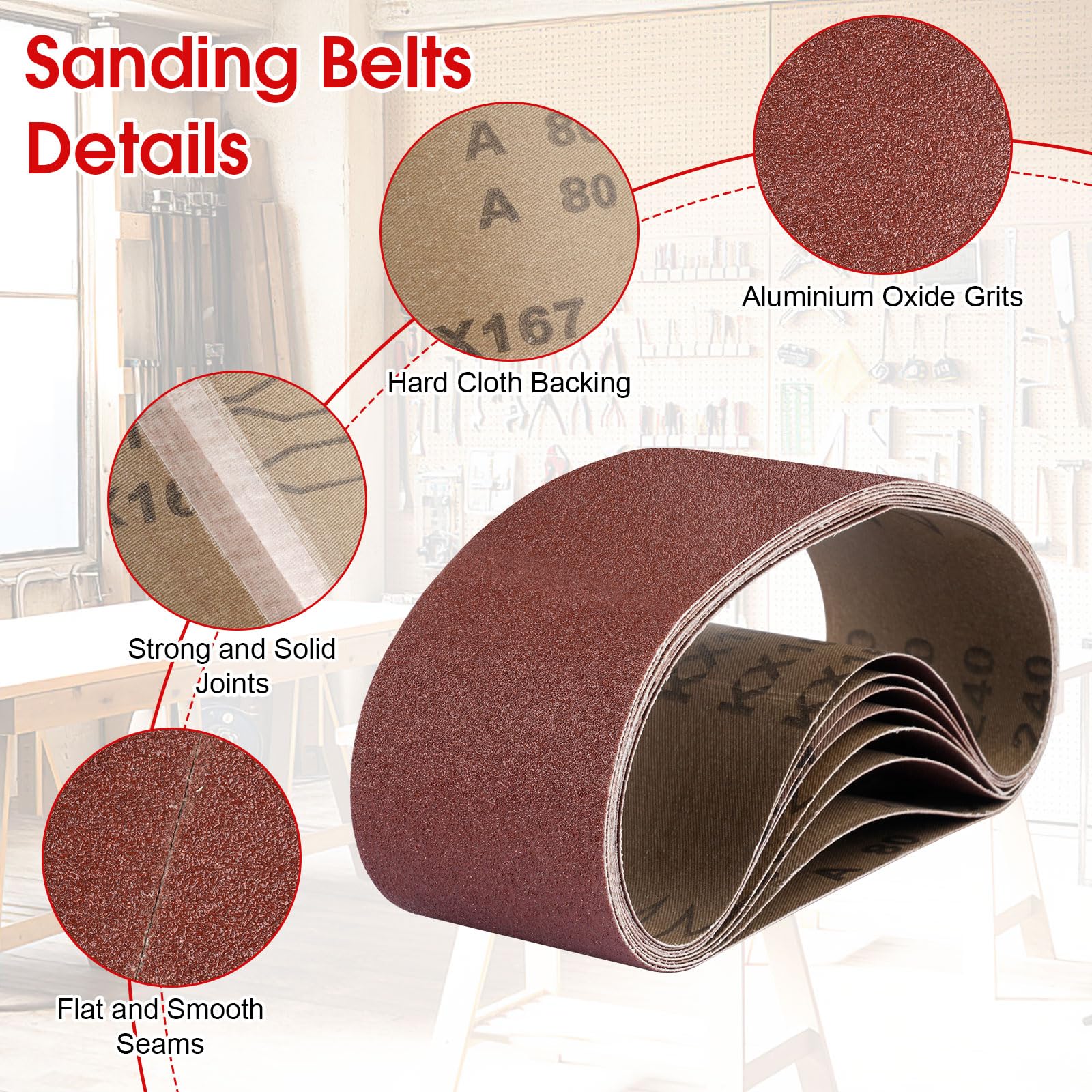 - Multiple Grit Options: Includes 8 pcs 3x21 sanding belts, providing 4 different grits: 80, 120, 150 and 240 grit, 2 belts each, suitable for various sanding needs from coarse shaping to fine polishing