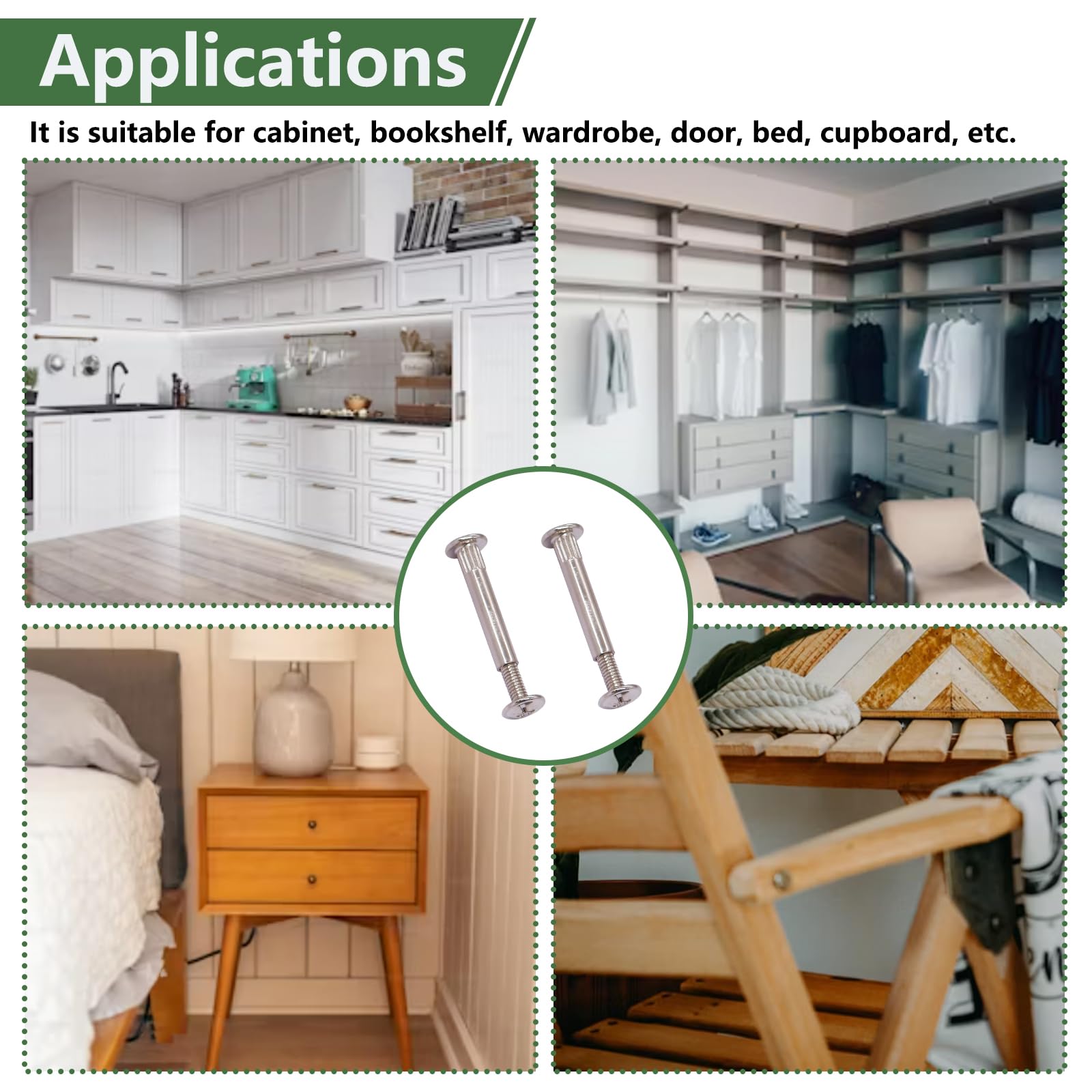 - Wide Application: These furniture connector bolts are suitable for connecting furniture or parts together, for cabinet, bookshelf, shoe cabinet, wardrobe, door, bed, cupboard, etc.