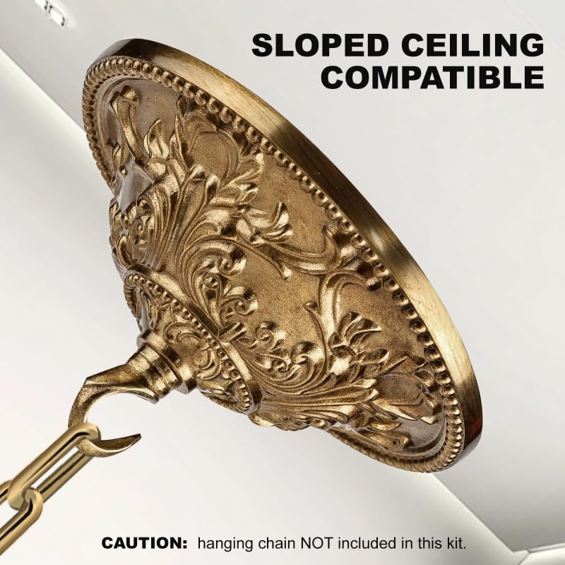 Details: This exquisite canopy kit is made of NICE quality brass and is suitable for pendant light, chandelier, ceiling hanging light, or any hanging decor. It has a decorative design that makes it look more exquisite than other chandeliers, and can be used as a mounting plate or cover part for plug-in lamps and ceiling fans. The retro style is amazing and can add a touch of elegance to any room. It is very suitable for DIY projects and can be used to create your own unique light fixtures.