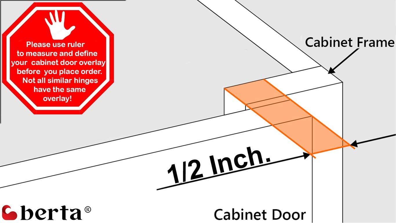 Berta 60-Pack, 1/2 inch Overlay Soft Closing Face Frame Cabinet Hinges, 105 Degree 6-Ways 3-Cam Adjustment Concealed Kitchen Cabinet Door Hinges with Screws (1/2 in. Overlay, 60 Pieces)
