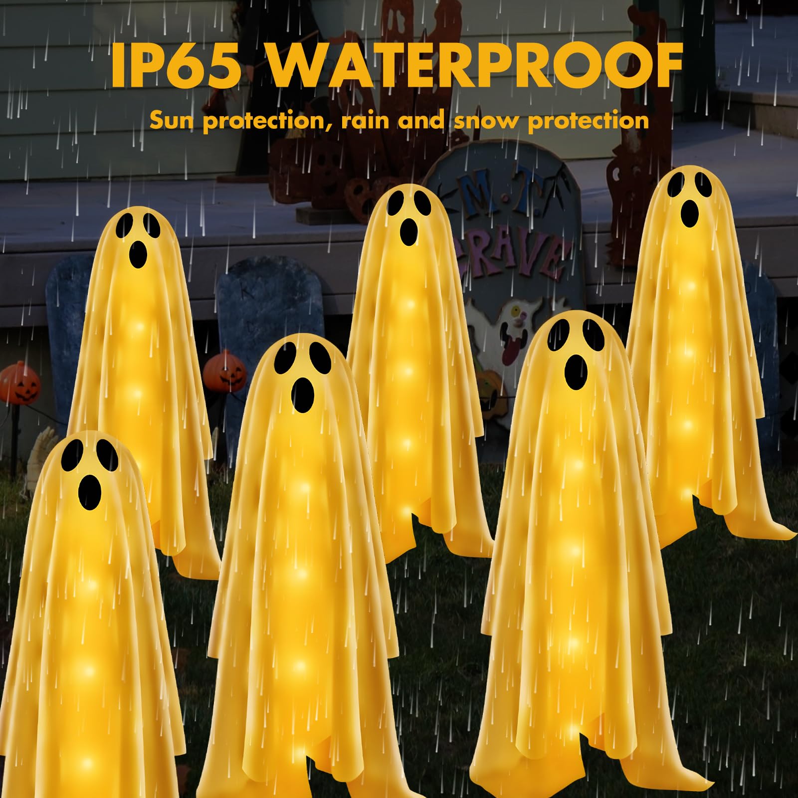 Betrihyes 6PACKS Halloween Decorations Outdoor Solar Ghost Lights,Scary Ghost Decor with Spooky Party Gifts,Solar Halloween Path Lights for Front Porch/Yard/Garden/Home/Ghost Party Decor Warm White