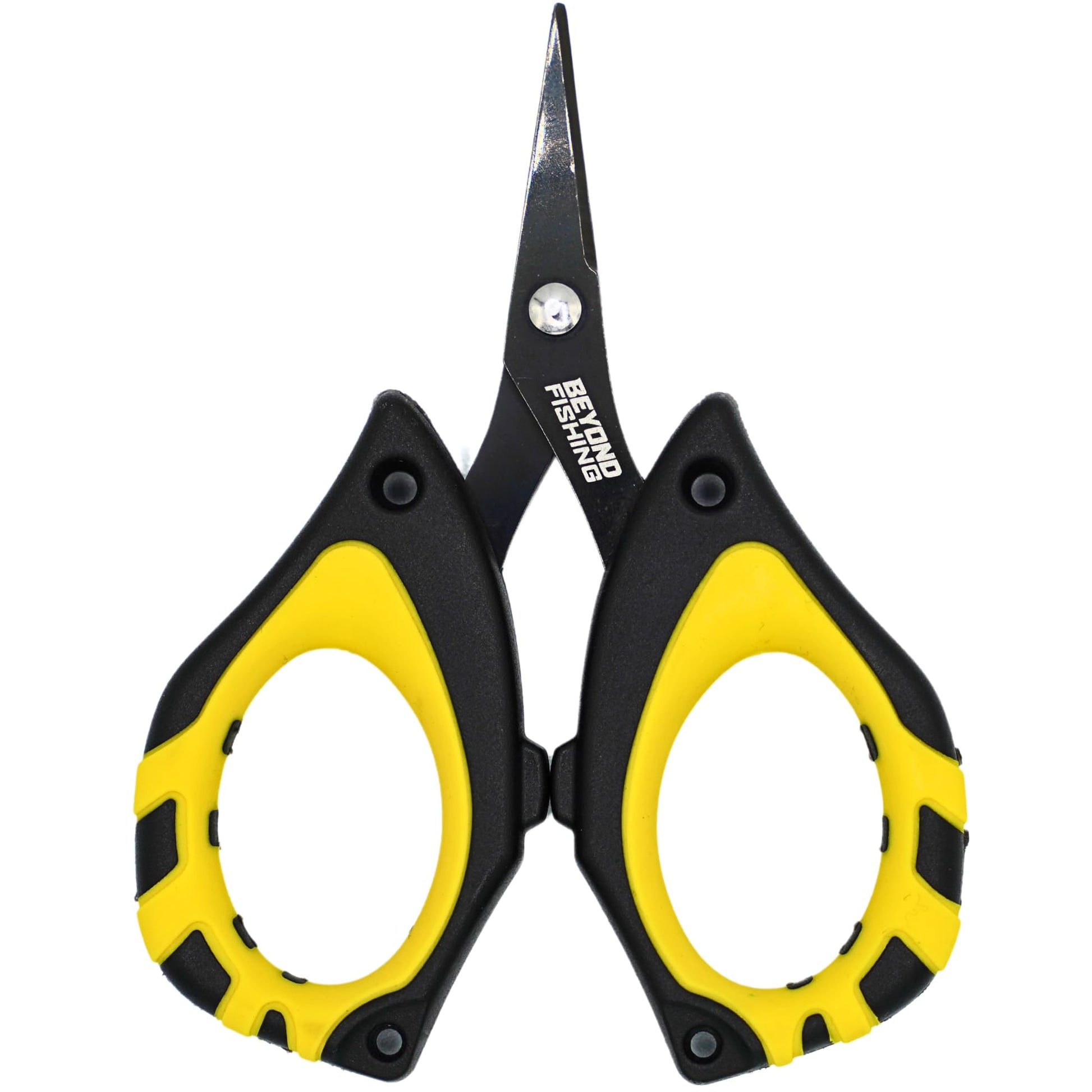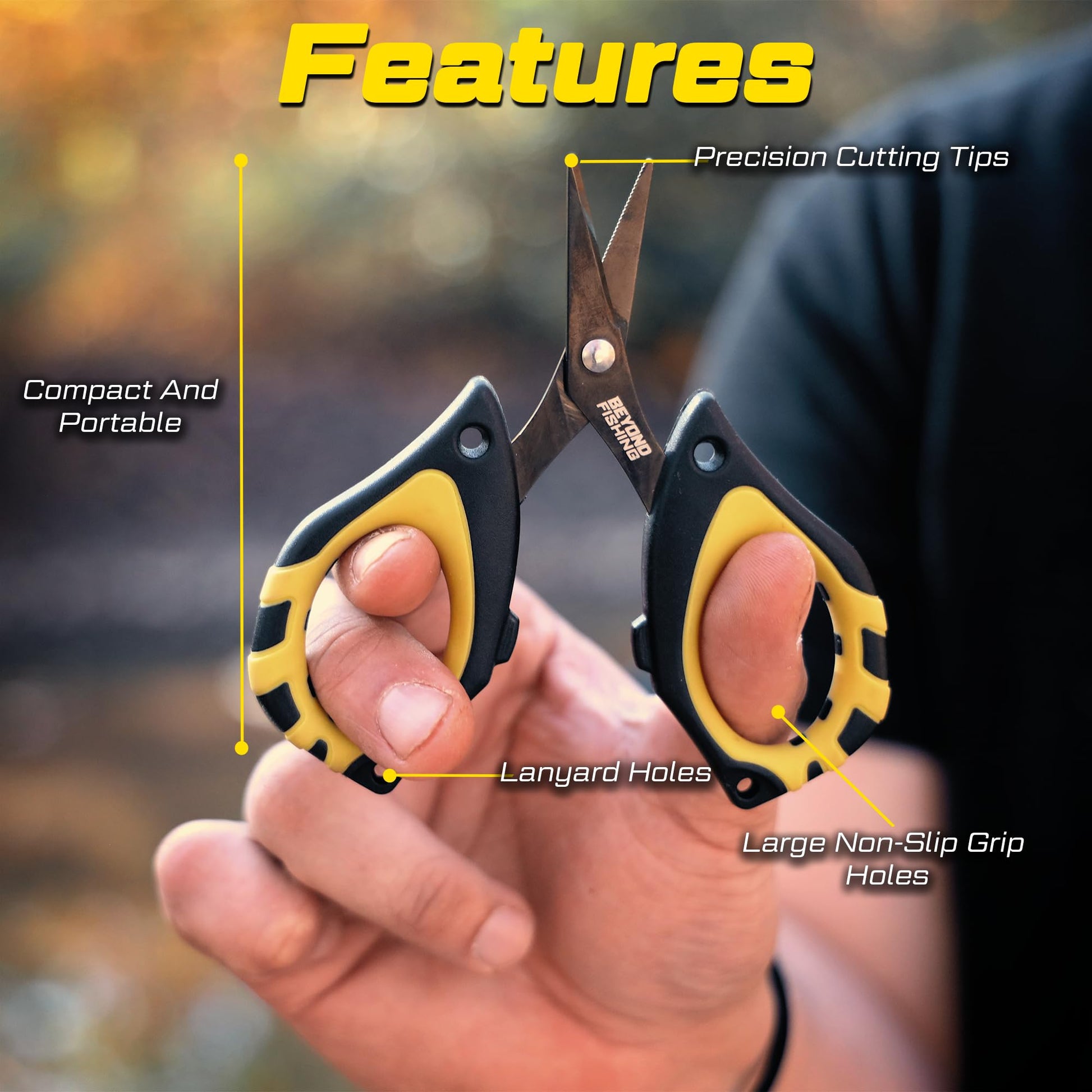 Beyond Fishing - 4.5” Fishing Scissors for Braided Line, Stainless Steel with Serrated Blades, Non Slip Grip, Large Finger Holes Fishing Line Cutter