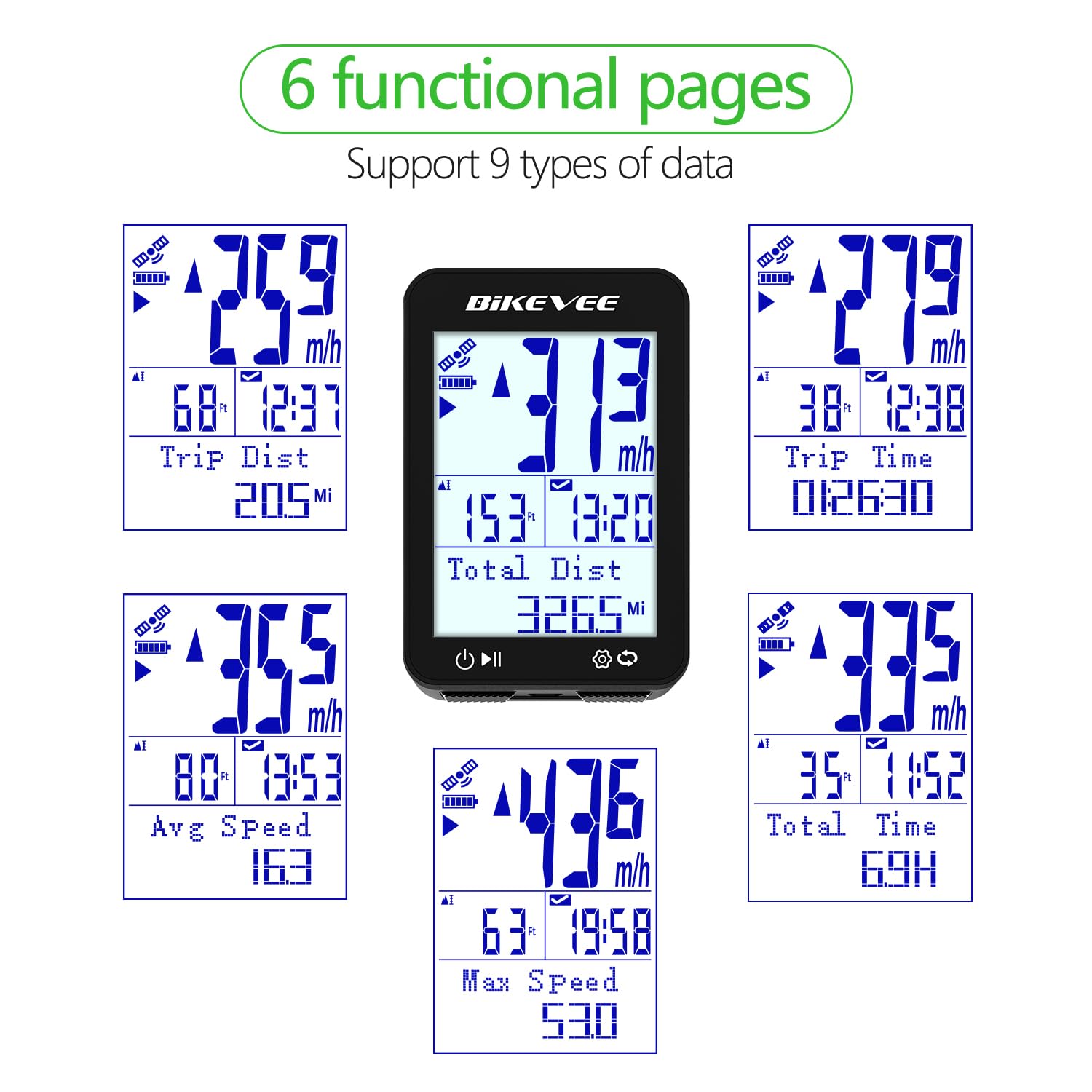 Bikevee GPS Speedometer & Odometer - Wireless Bike Computer, Auto Start/Stop, Auto Backlight, IPX7 Waterproof, 2.4" LCD, Cycling Tracker in MPH & KM/H - Black
