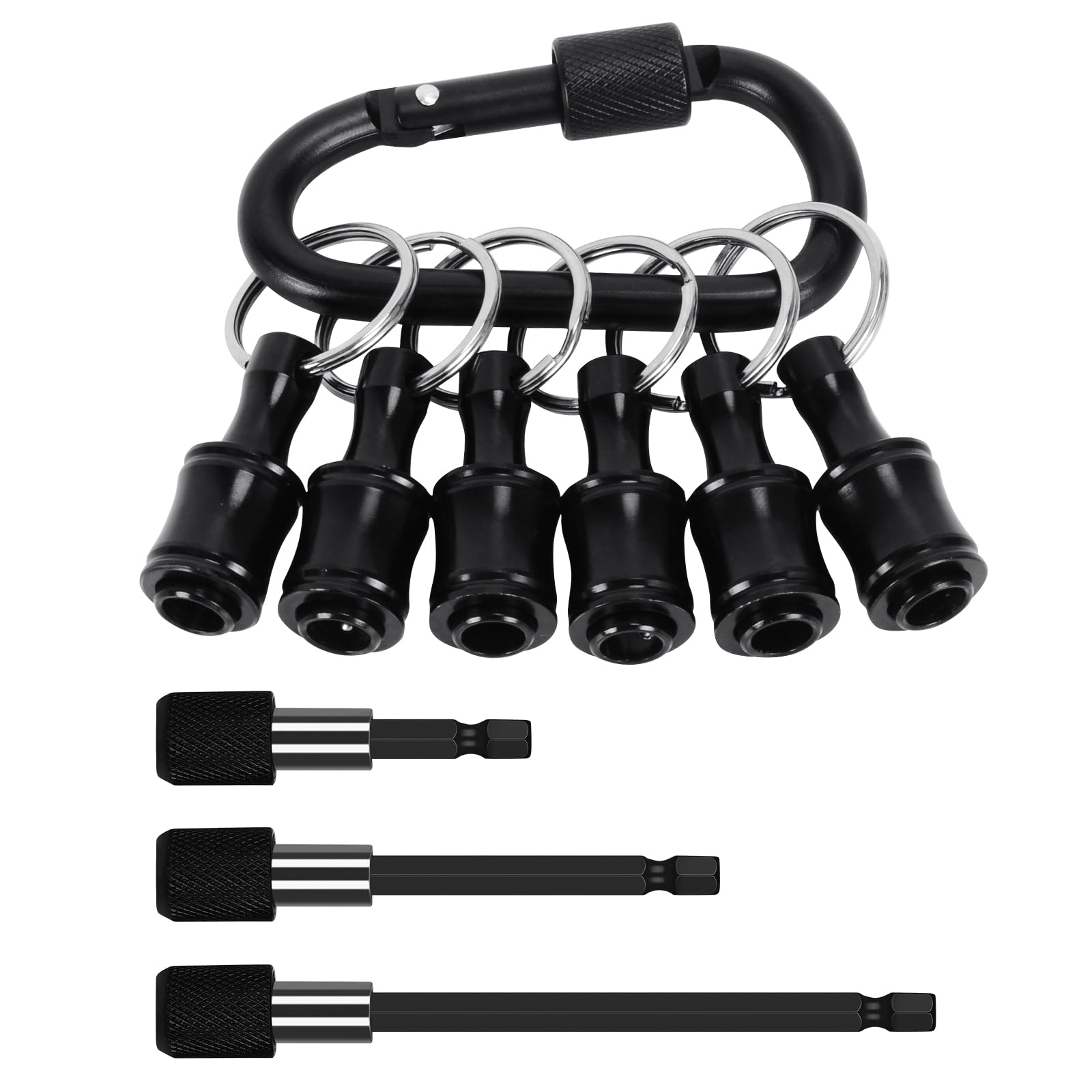 - Bit Holder Keychain: Keychain screwdriver bits holder set has smooth finish and removable bushings, suitable for 1/4 "quick hex shank, 1/4" hex socket, variety of electric screwdrivers, hand-held screwdrivers and drill bits.