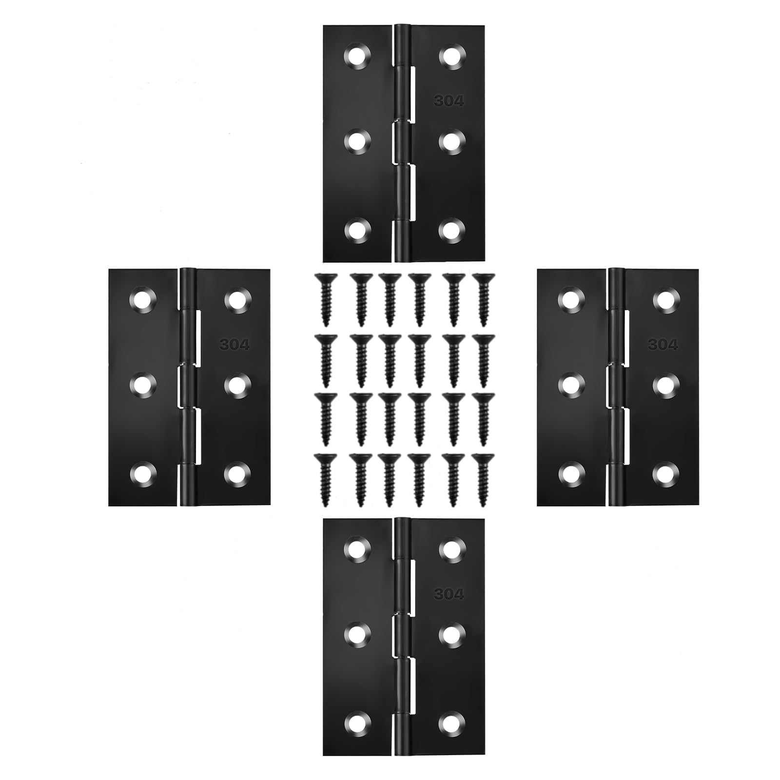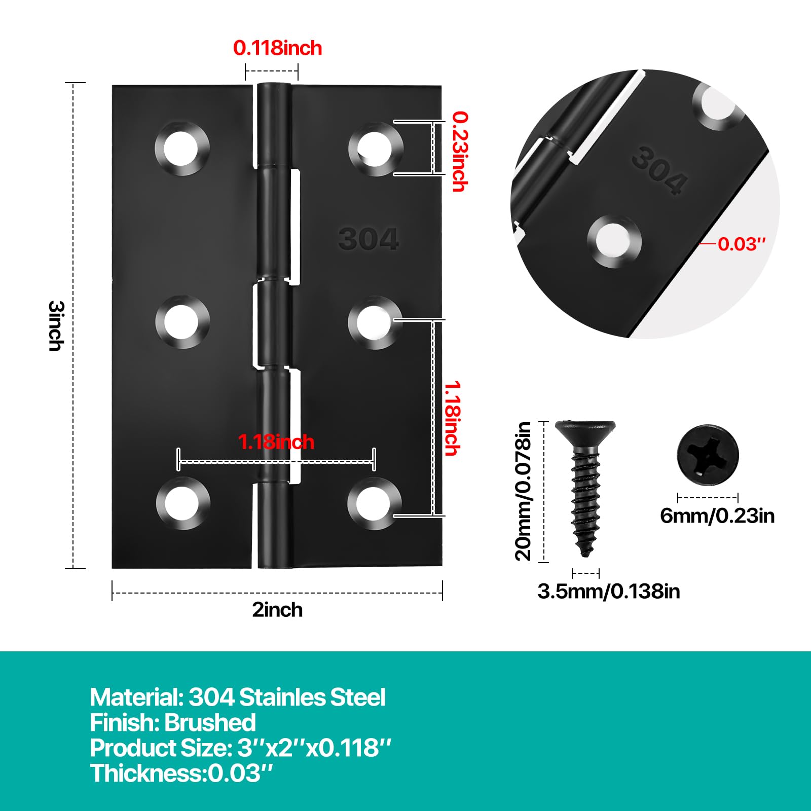 - 1.【Ultra-Durable 3" Stainless Steel Hinges】3 inch black hinges made from 304 stainless steel, resist rust & corrosion with 24pcs M3.5x20 screws