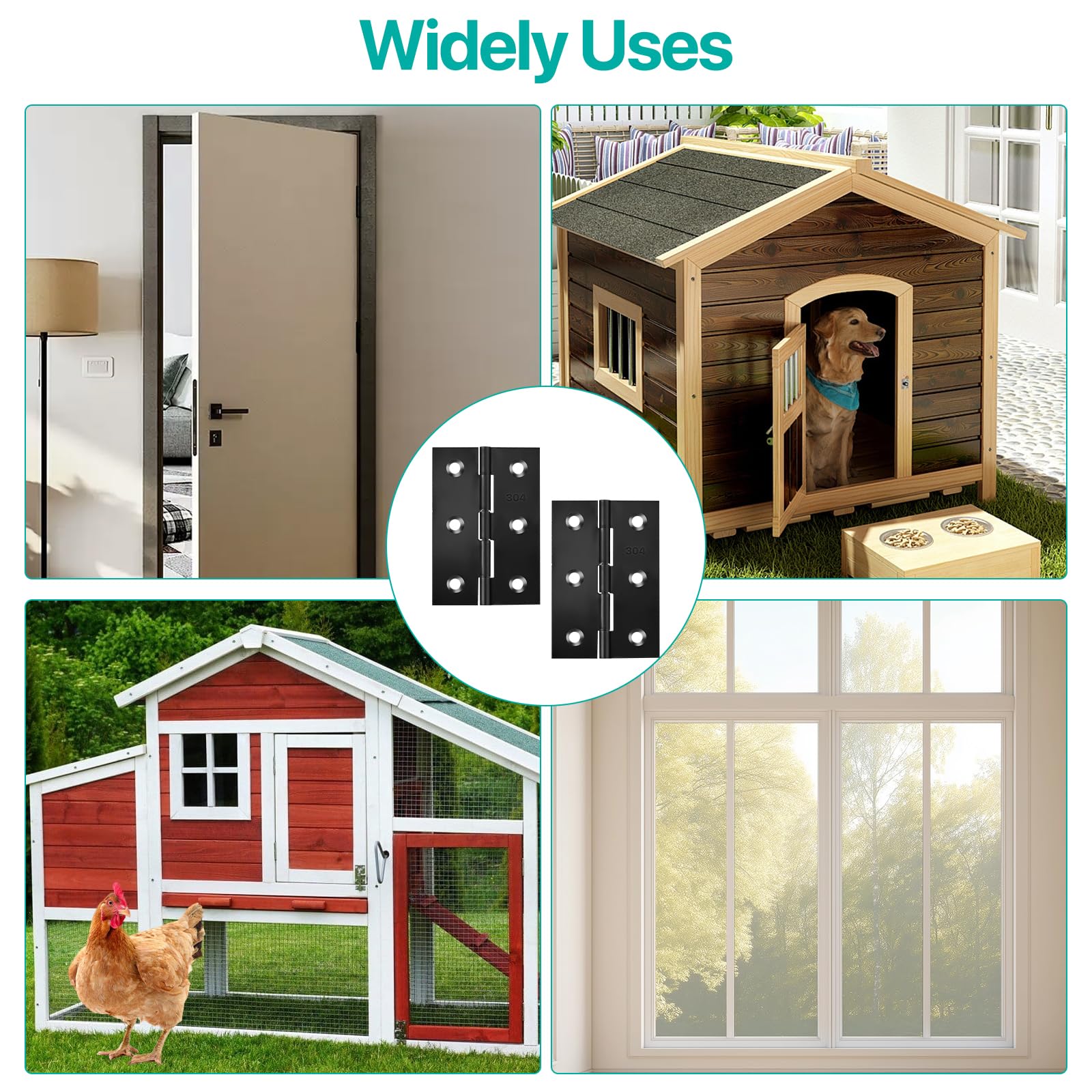 - 2.【Heavy-Duty & Corrosion-Resistant】3-inch black door hinges engineered for wooden windows/outdoor structures, Withstands extreme humidity/salt air - ideal for coastal areas/chicken coops