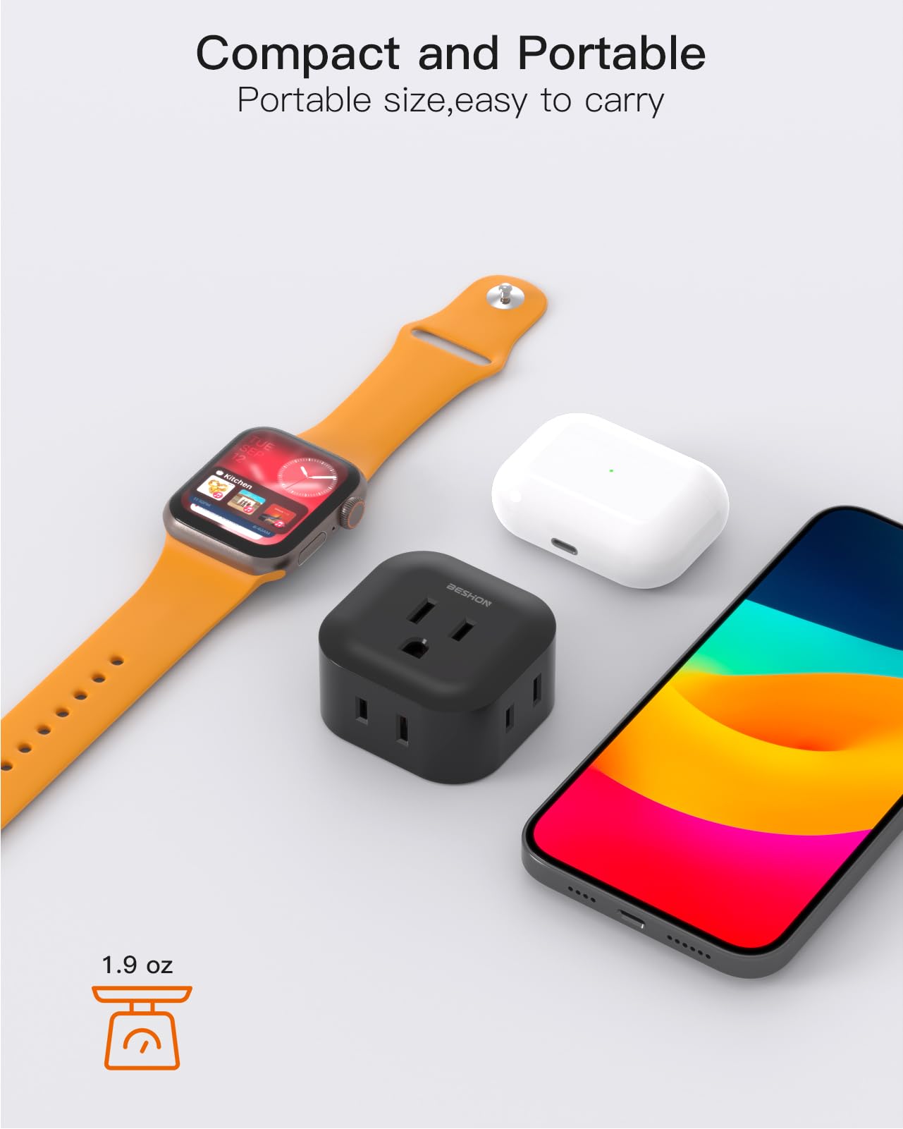 - 【Compact and Portable】The small size of 2.16*2*1 inches is perfect for your business trip or travel. This mini wall plug adapter fits easily into your suitcases, backpacks, and handbags. You can take this plug splitter anywhere such as home, hotel, office, and college dorm room.