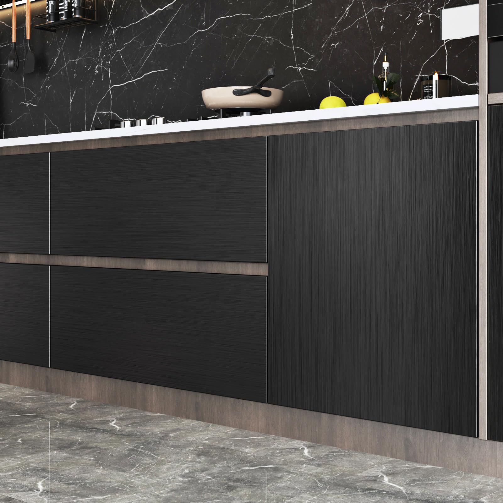 Black Stainless Steel Wallpaper Peel and Stick Backsplash Refrigerator Wrap Metallic Black Contact Paper for Cabinets Countertops Modern Furniture Upgrade Brushed Wallpaper Removable Film 15.75"×78"