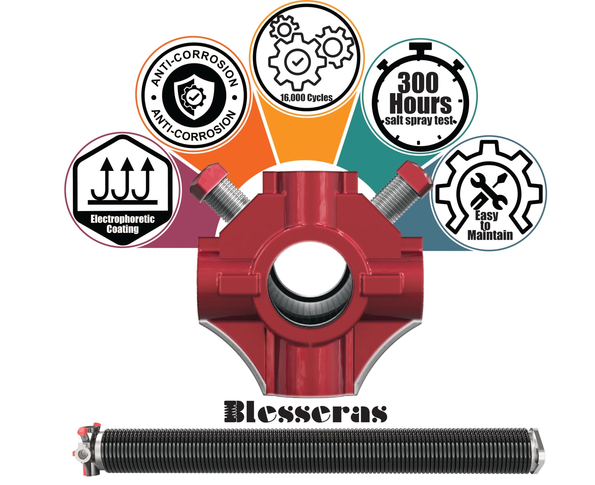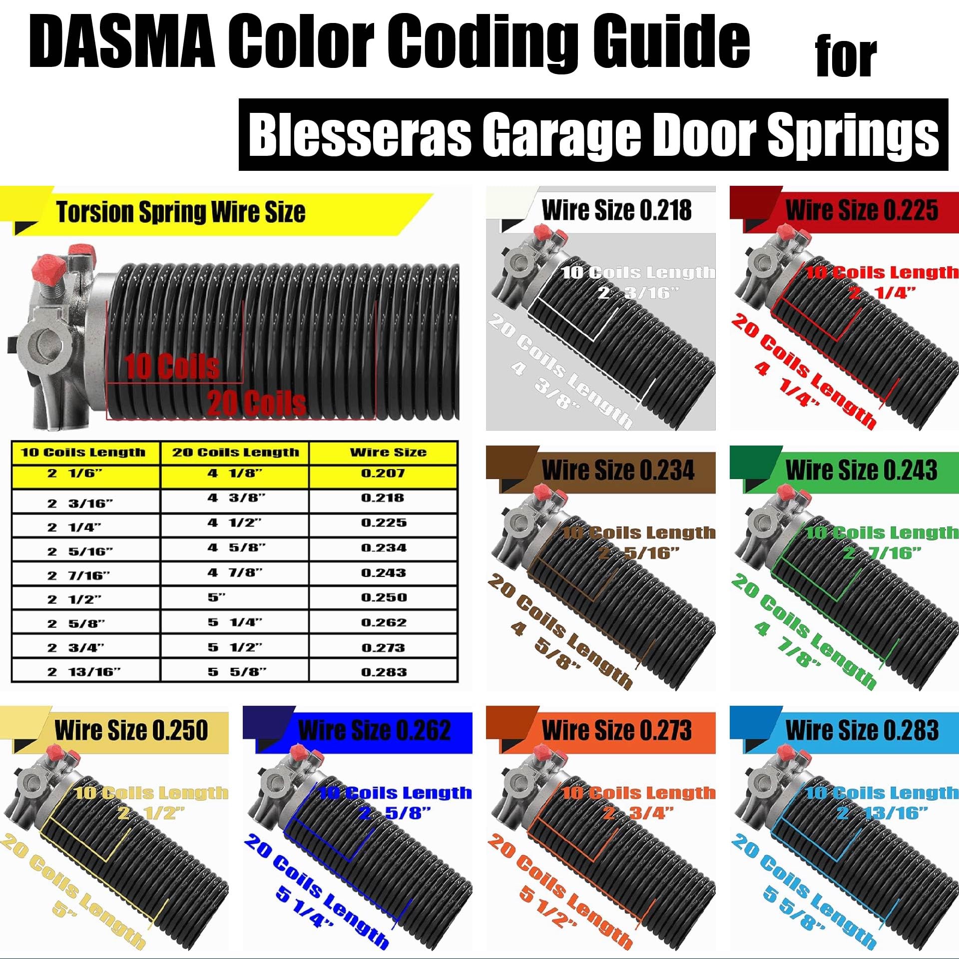 Blesseras Garage Door Torsion Springs with Non-Slip Winding Bars, Oil-Free Electrophoretic Coated Coil 2-Inch Diameter Spring Set, 1 Pair, 207 X 2'' X 22''