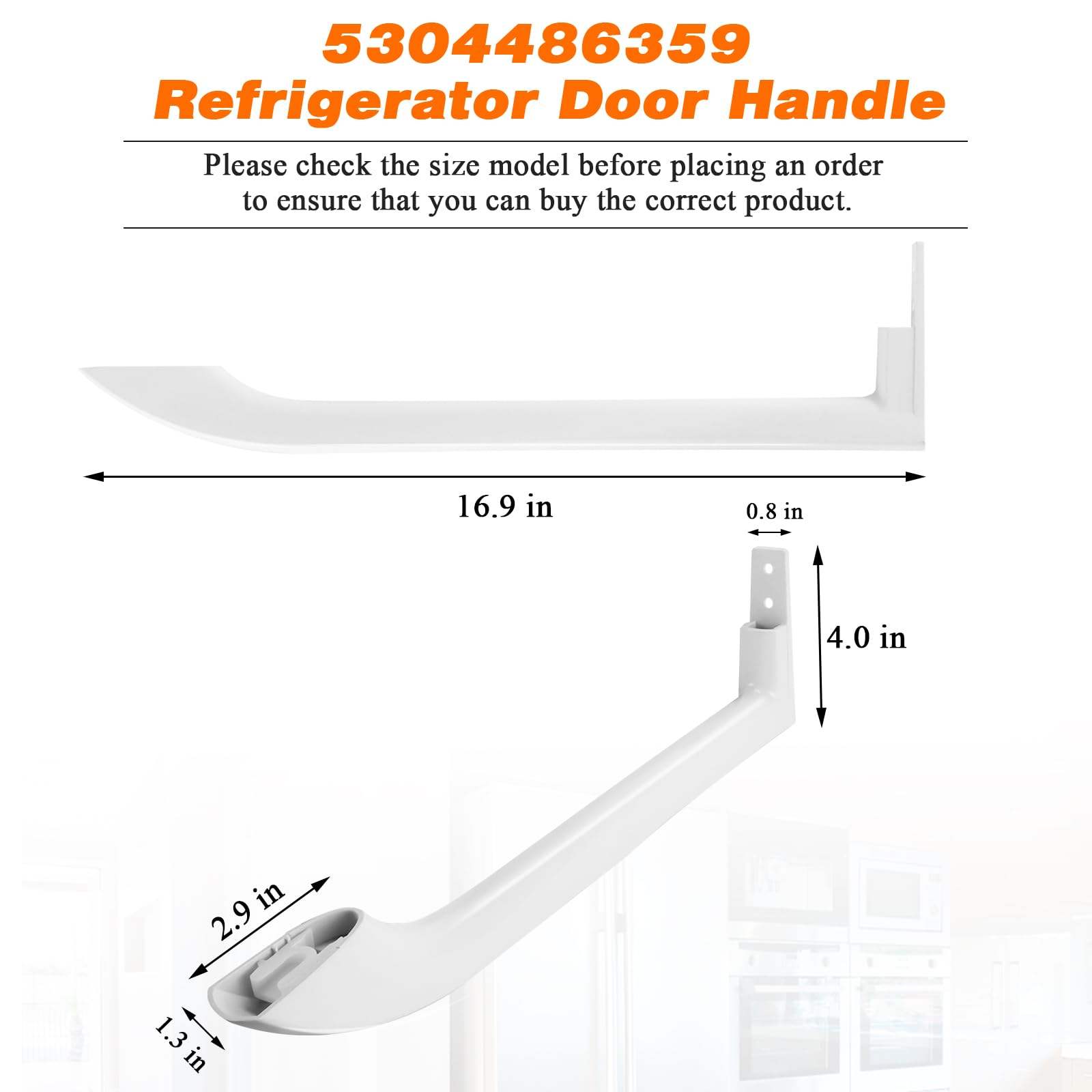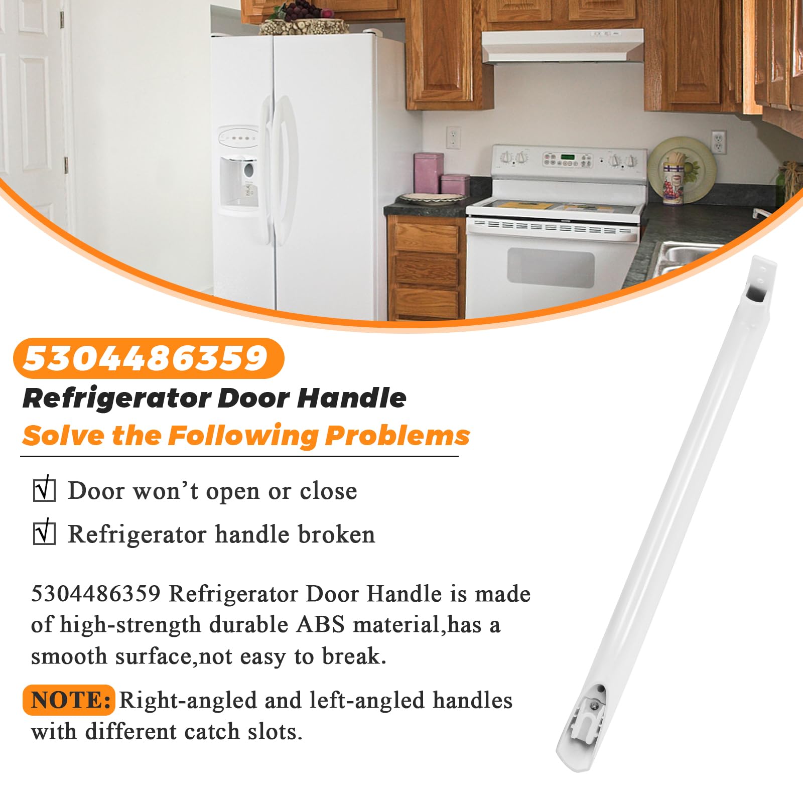 - UPGRADED 5304486359 REFRIGERATOR DOOR HANDLE : 5304506469 refrigerator handle for frigidaire is made of upgraded high quality, high strength abs material with a glossy surface, ensures screws are securely fastened in place. Refrigerator door handle FFTR1814QW4A 5304486359 not easily broken, resistant to wear and tear, screws not easily dislodged,give your refrigerator a new look. ●NOTICE: When installing, be sure to check whether the refrigerator bayonet is accurate. FFTR1814QW4A 5304506469 refrigerator handles for refrigerator is left slope