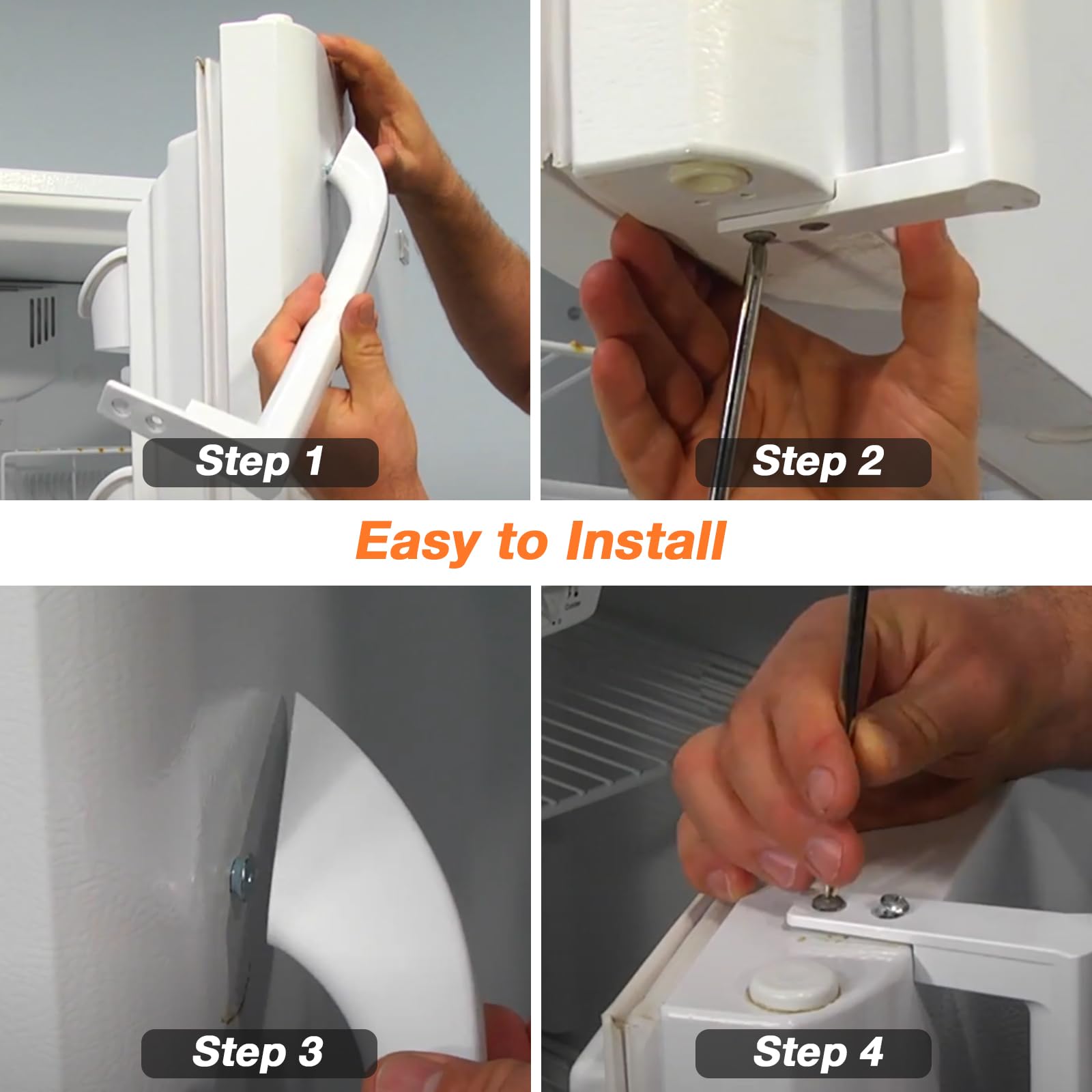 - Easy to Install : Installing a new 5304486359 handle is really straightforward! All you need is a screwdriver. Simply use it to unscrew the side handle from the door, and then you can release it from the hidden bottom screw. Slide the new refrigerator door handle downwards over the hidden screw until it's in the notch. Then, fasten the two screws at the top of the door to the top of the handle. If you need a little more help, you can watch handy online video! One last thing to remember is that fridges handle come in two different styles – one that tilts to the right and one that tilts to the left. Be sure to check which style of refrigerator handle you have before you start