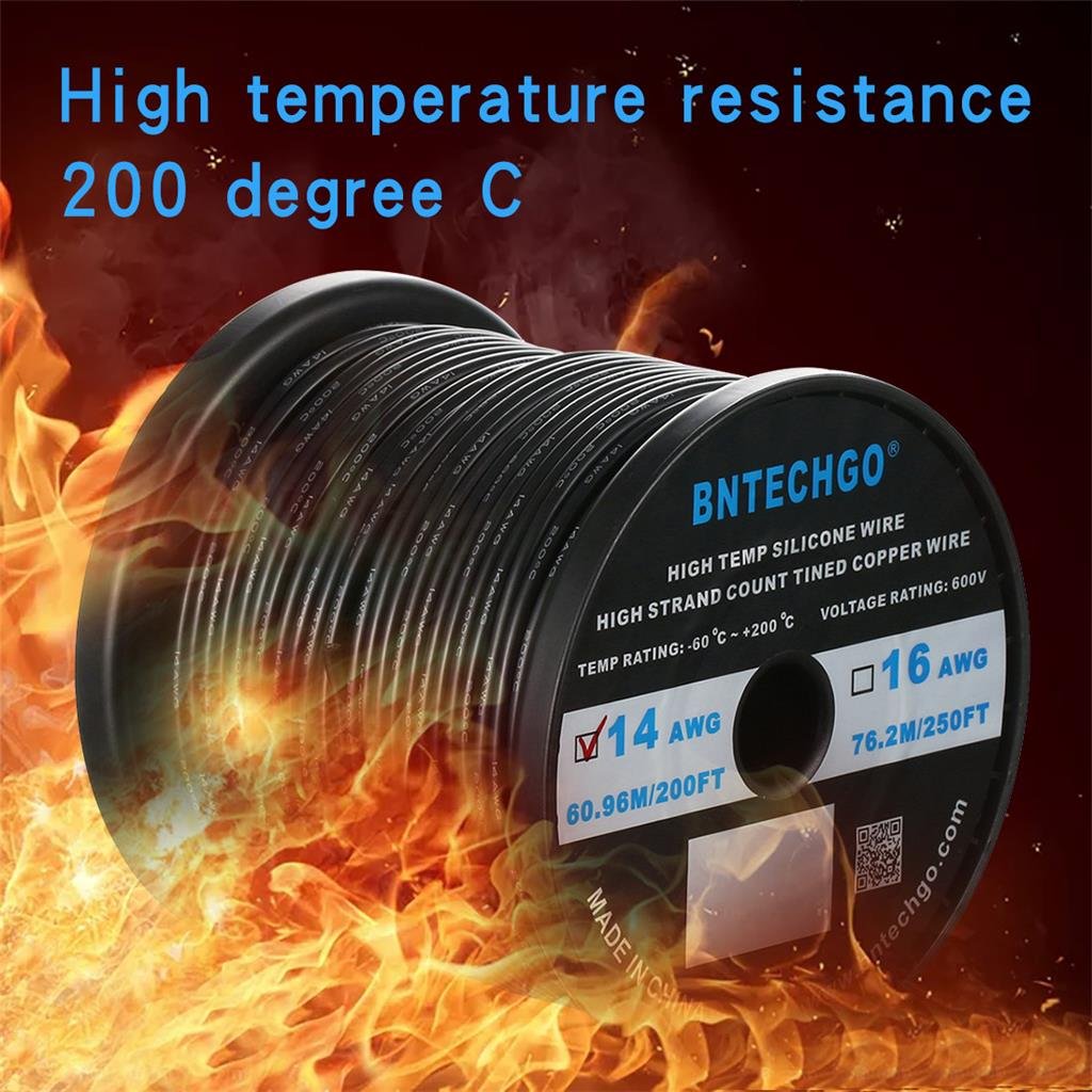BNTECHGO 14 Gauge Silicone Wire Spool 200 ft Black Flexible 14 AWG Stranded Tinned Copper Wire