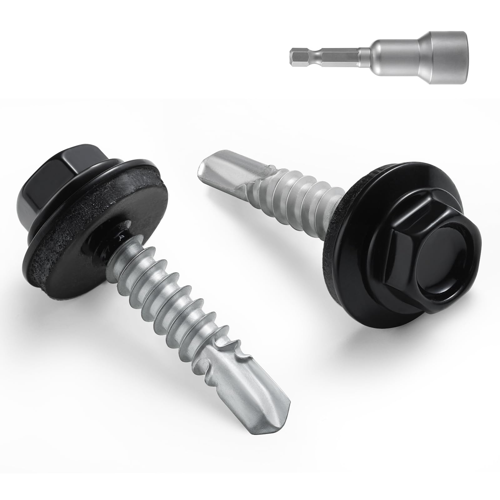 BNUOK #10 x 1 in Self-Drilling Metal Roofing Screws,Sheet Metal Roof Screw,EPDM Washer,Black Hex Head,with Hex Driver Bit(1LBs,85Pcs)