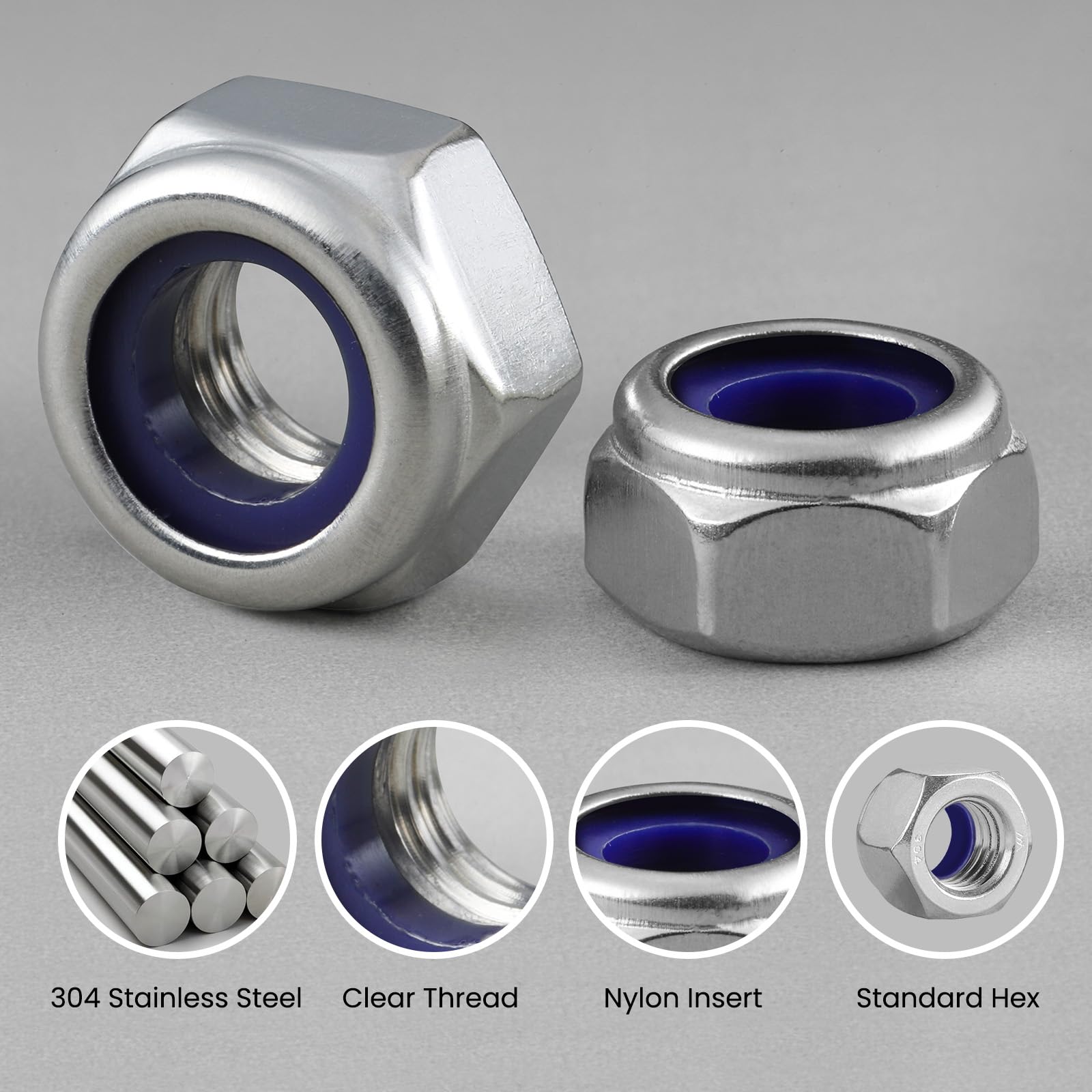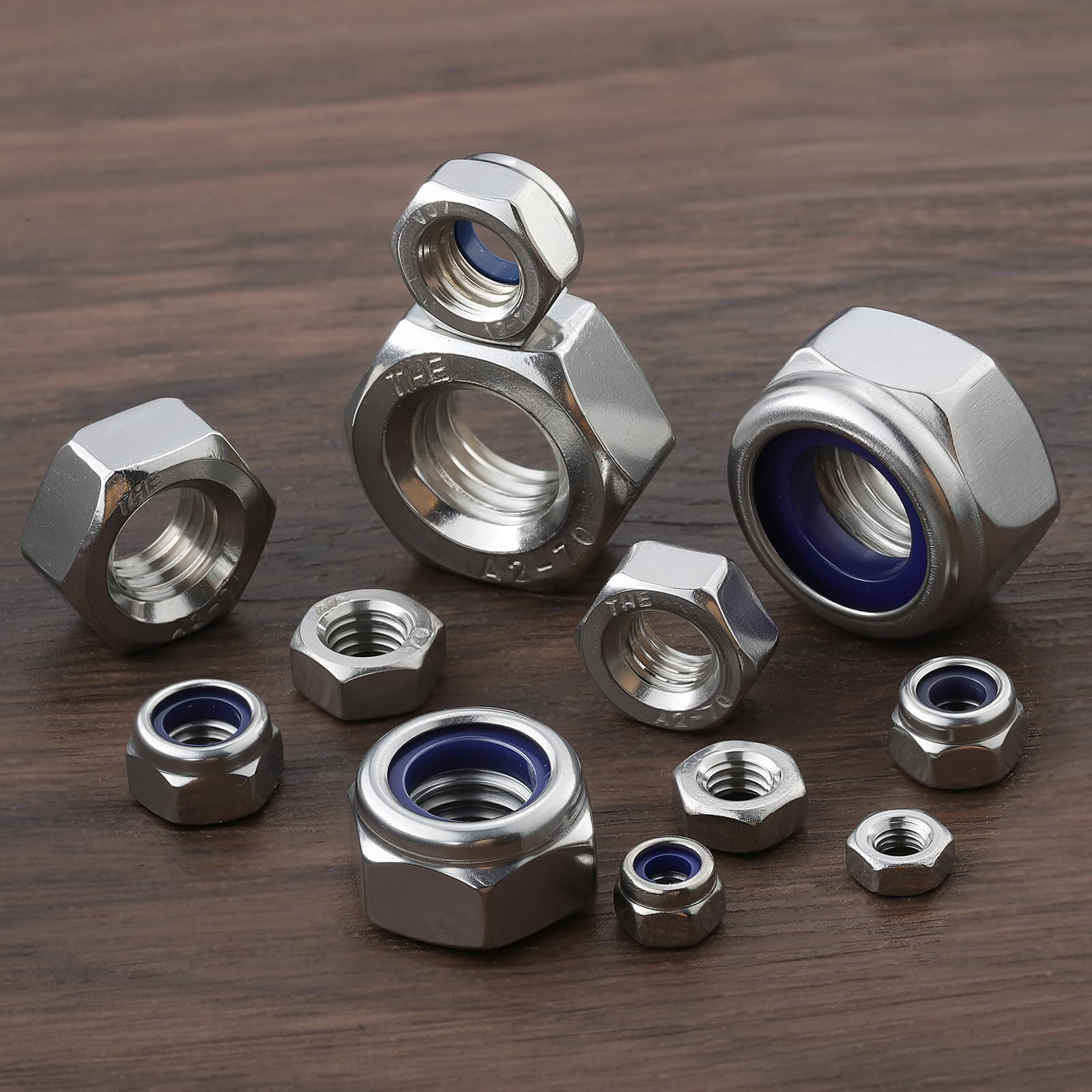 - Corrosion and Rust Resistant: The nylock nut is made of 304 (18-8) stainless steel A2-70, not rust in outdoor use. Strong and durable hardware nuts