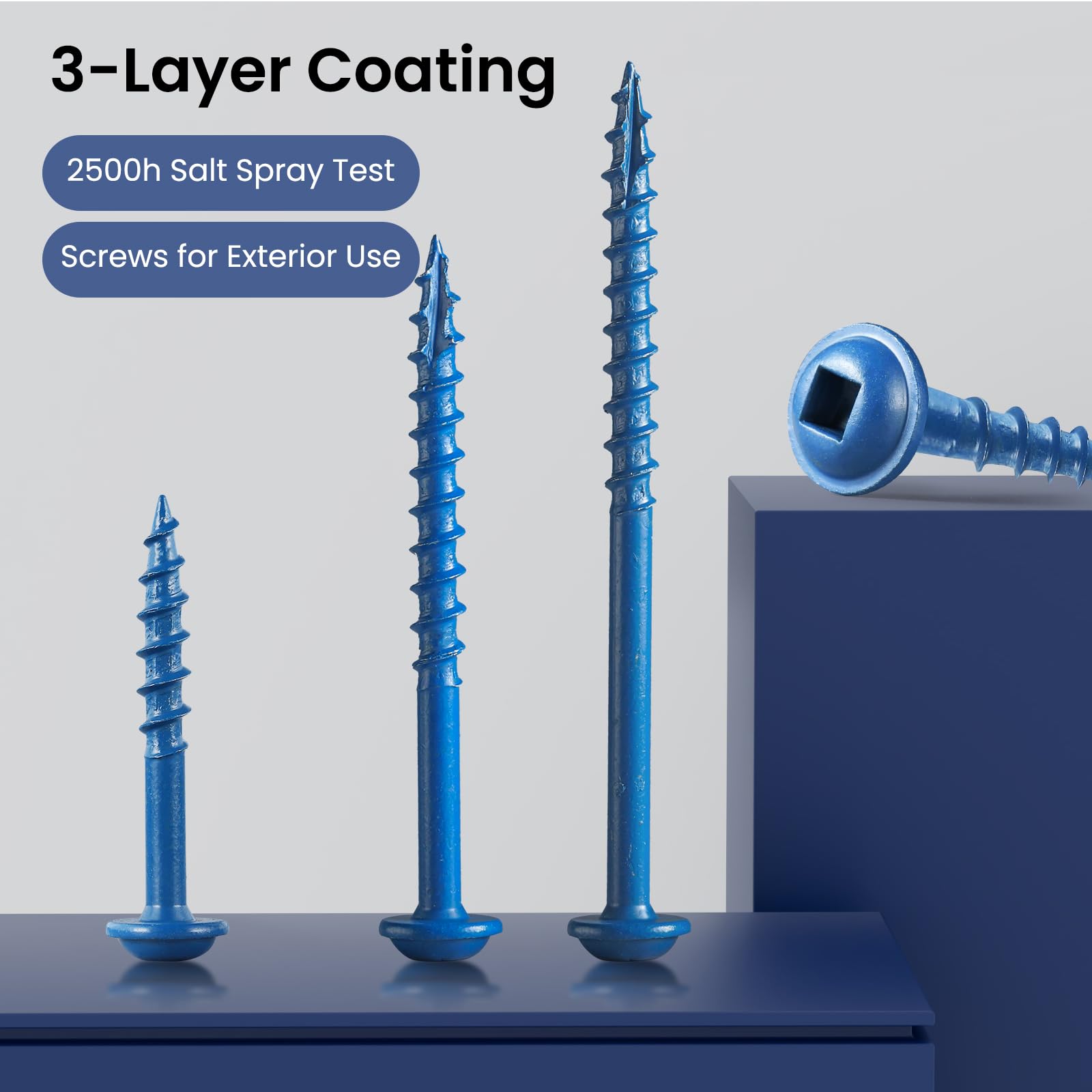 - Rust-Resistant: Our pocket hole screws are finished with 3-layer coating, with high corrosion resistance, pass 2500h salt spray test, for outdoor and indoor use, the pocket screws are made of alloy steel, with high hardness, won't bend or snap