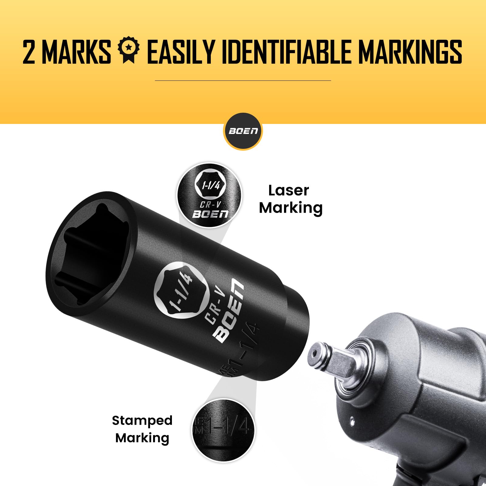 BOEN 1/2" Drive Deep Impact Socket,1-1/4 Inch Premium Socket,SAE,6 Point,Cr-V Steel with Laser Marking - Strong and Durable