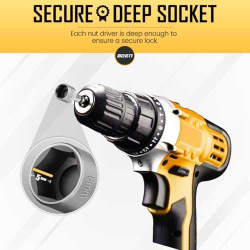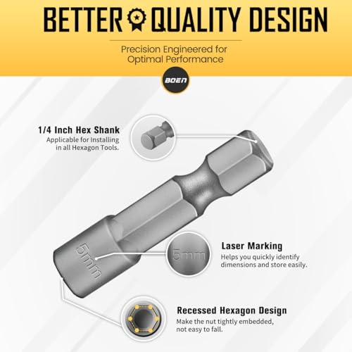 BOEN 9-Piece Power Nuts Driver Set, Metric Hex Shank (5-13mm), Impact Driver Bit Set, 1/4" Quick Change, Chrome Vanadium Steel