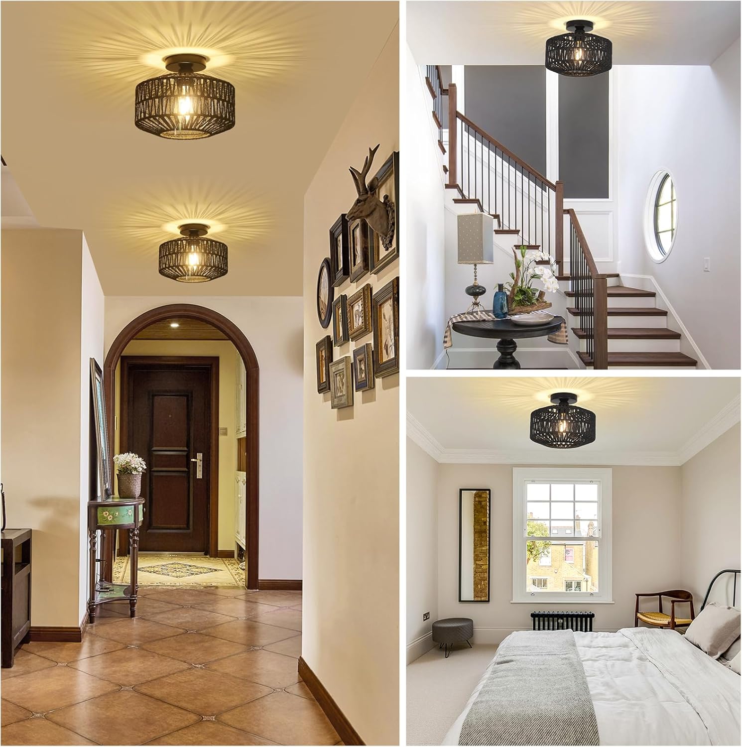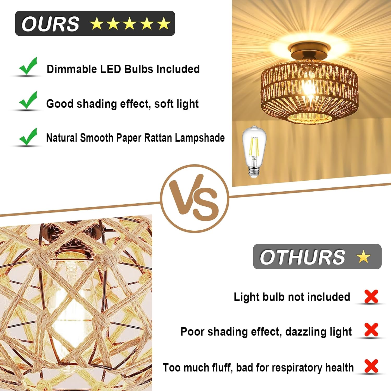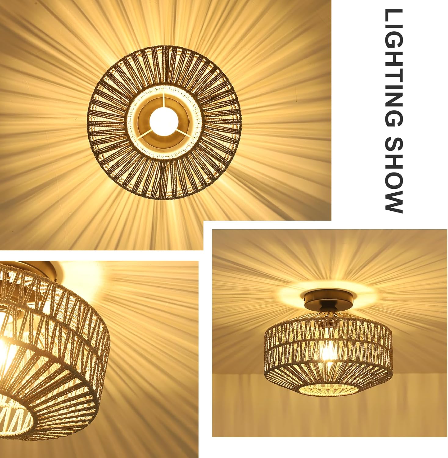 - 【Easy to install】The overall structure of the wicker light fixture is very simple, You only need to fix the lamp base and the lampshade together, then wire the ceiling light fixtures flush mount to the home circuit, and install the light bulb to get a perfect boho ceiling light,The whole process to install this close to ceiling light fixtures is even less than 15 minutes!