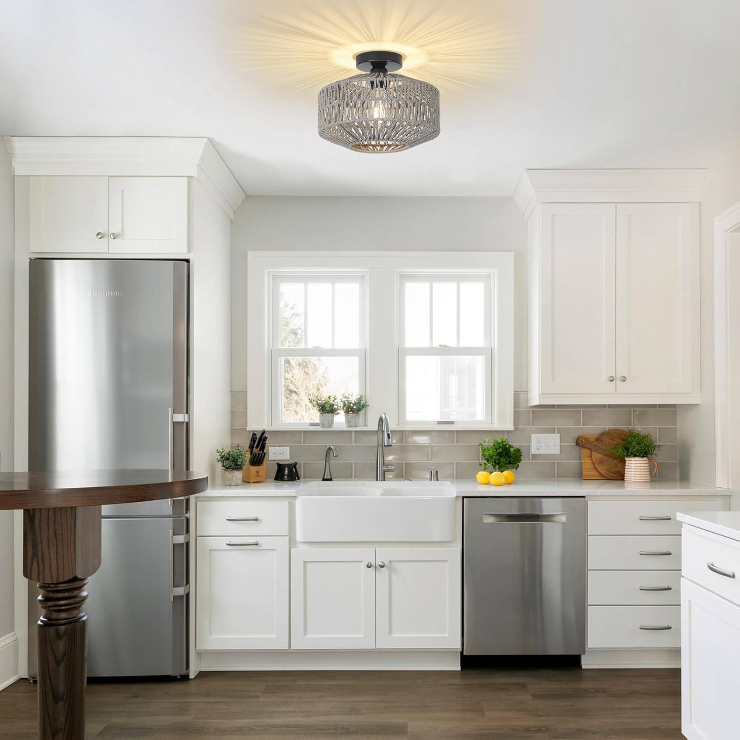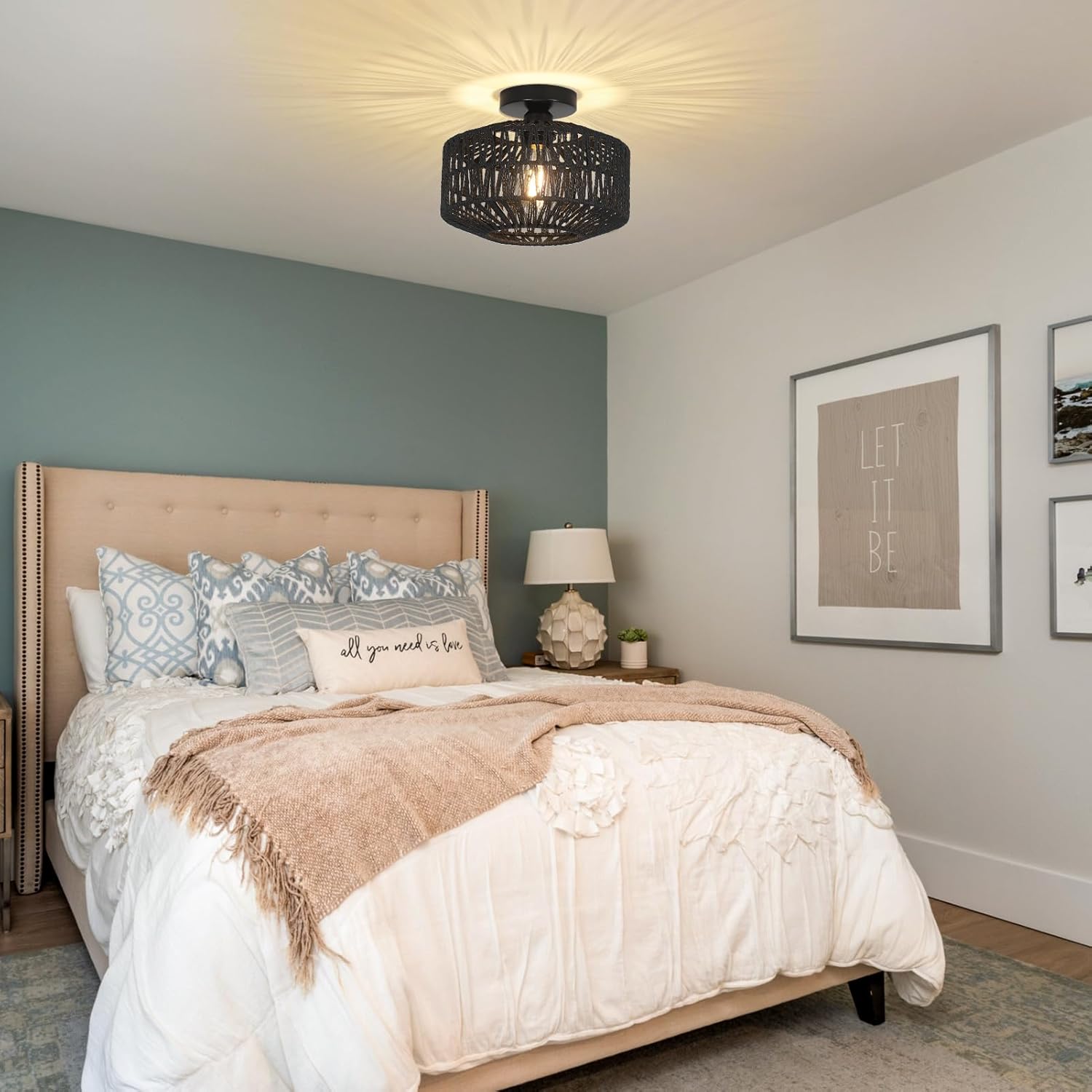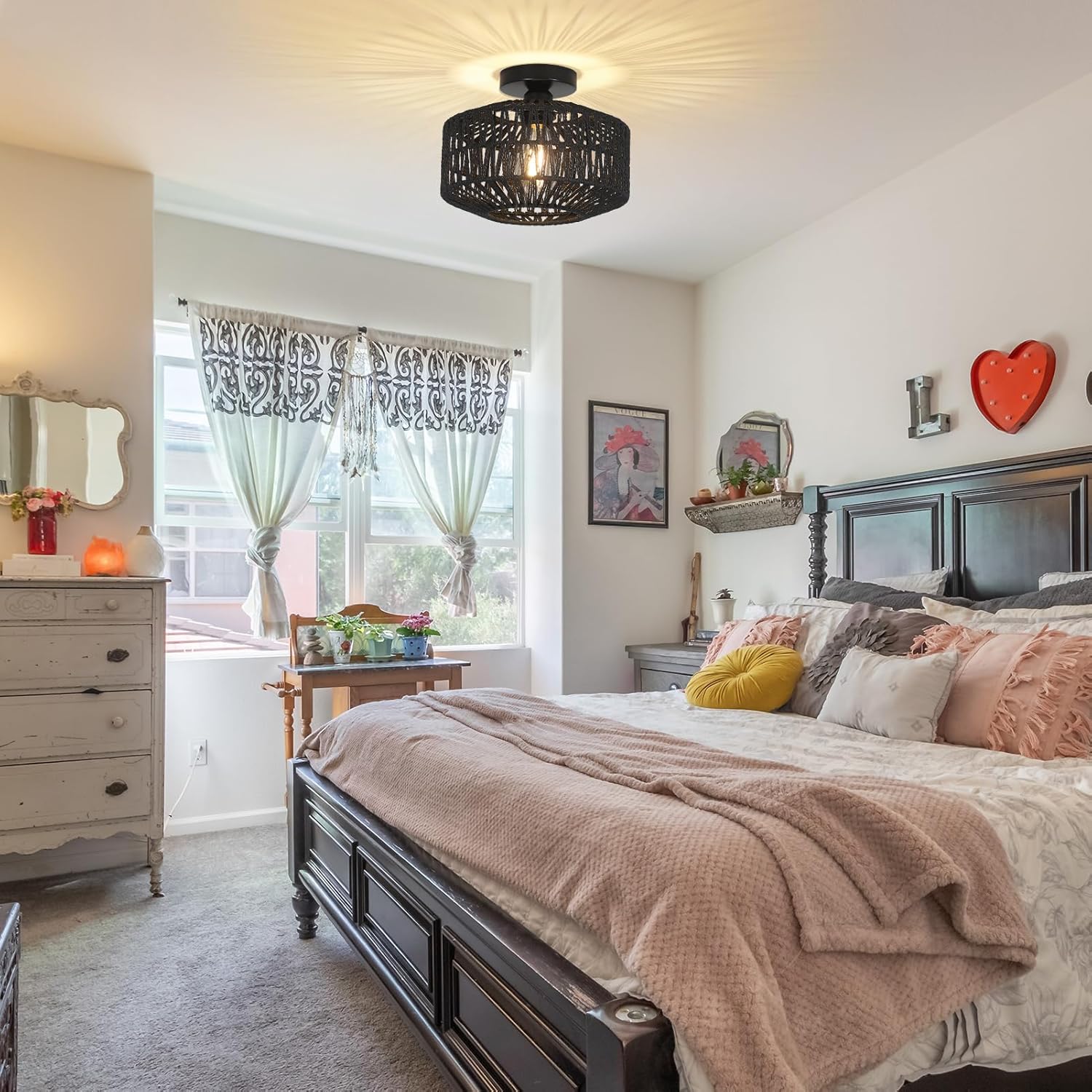 - 【Unique appearance design】The rattan ceiling light adopts a unique hollow structure, When the bedroom light fixture is lit, the lampshade emits a smooth and well-proportioned light and cast a very beautiful pattern on the ceiling, which is beautiful and chic. Perfect ceiling light fixture for use in multiple areas such as bedroom, kitchen, living room, room, kitchen island and more to add more spice to your home!