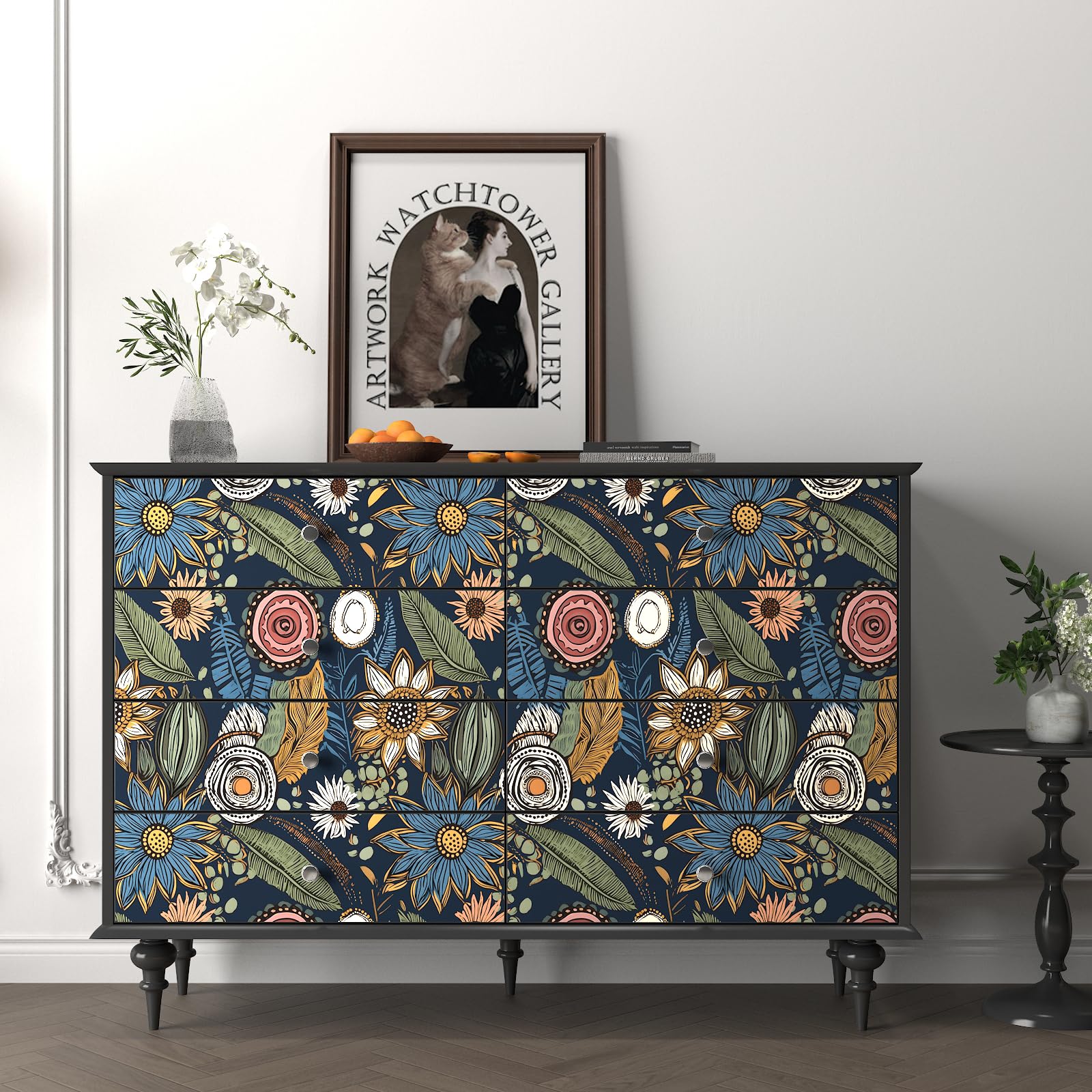 - ★Wide Application: The boho contact paper is a good choice to refurbish or decorate your home, it's a nice choice to DIY for covering any size of wall, countertops, cabinet, drawer, dining table, desk, bedside table, bookcase for bathroom, bedroon and living room. This dark color botanical wallpaper is easy to decorate your home and protect your furnitures. The beautiful flower contact paper create an atmosphere of elegant to your home.