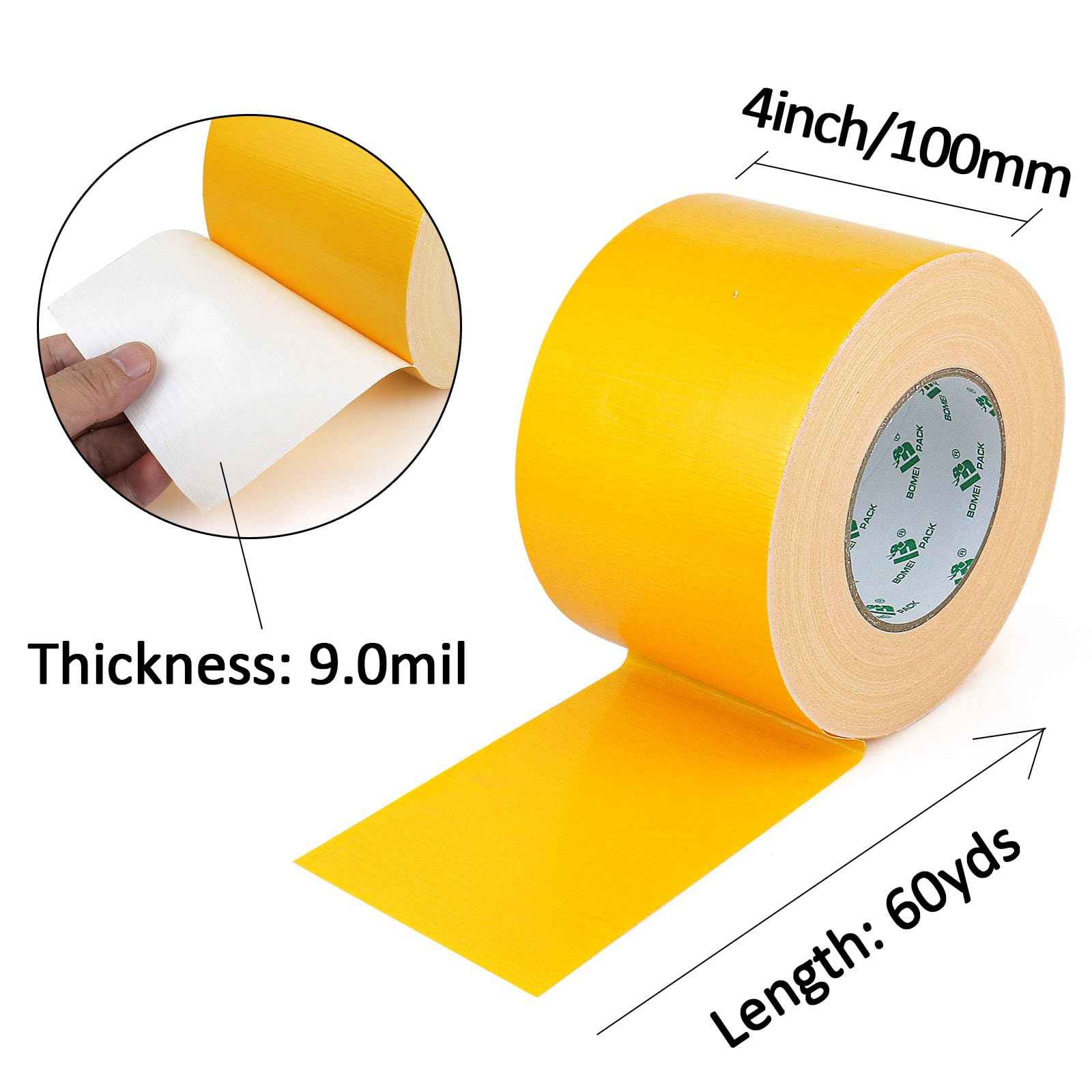 BOMEI PACK 4inch Wide Yellow Duct Tape, Heavy Duty Strong Waterproof Industrial Color Duct Tape 9.0mil x 4inch x 60yds for Packing and Repairing