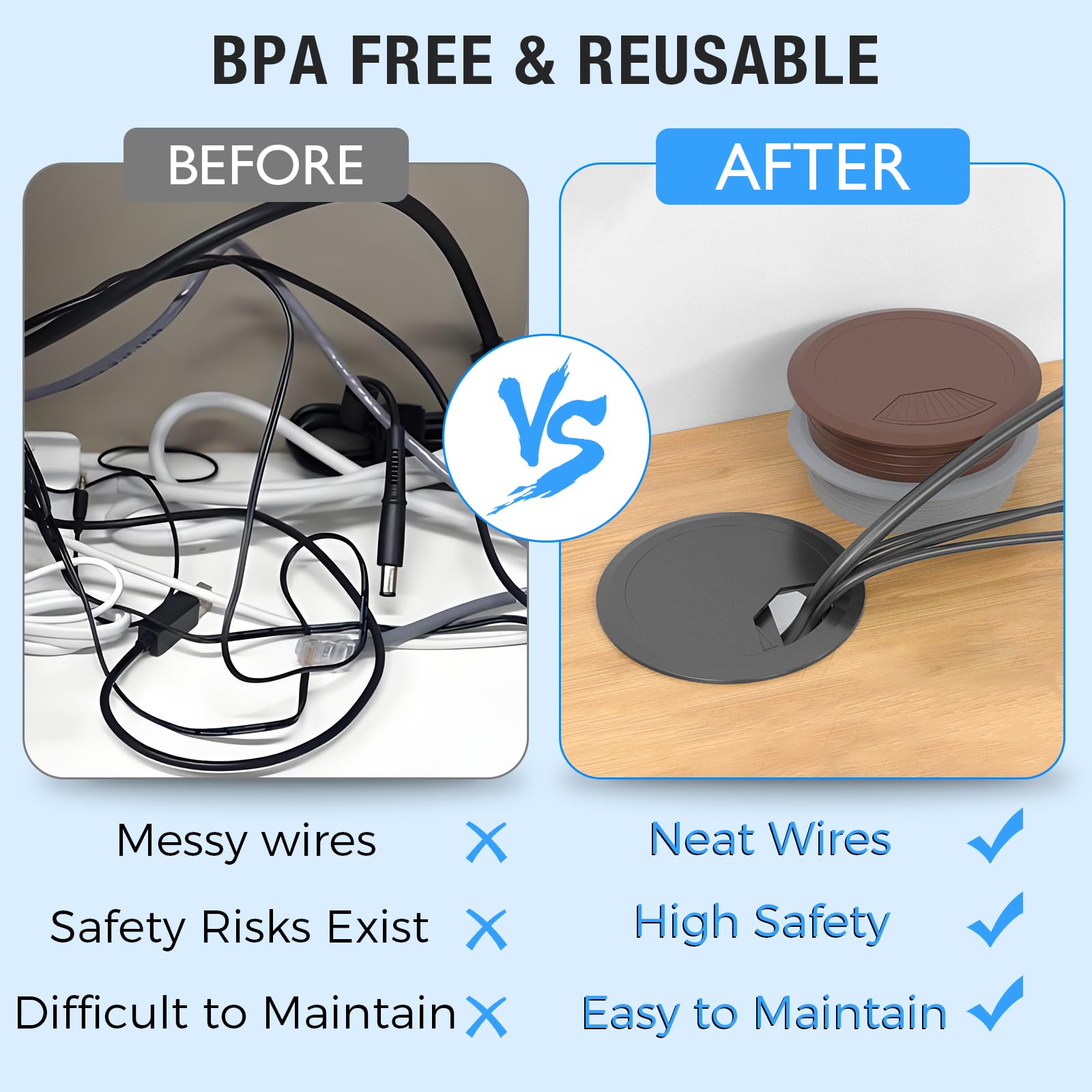 - Premium Material:BOPOREAE desk hole cover for cables is made of high quality ABS plastic material that is sturdy; The plastic grommets has high impact strength, insulation, heat resistance and good comprehensive performance,wear-resistant, durable to use