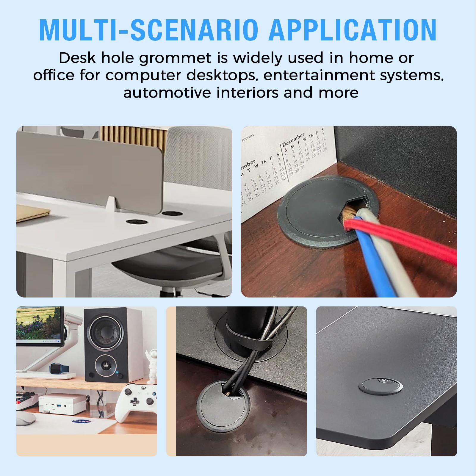 - Adjustable and Protection:The cable grommet design with adjustable spring cover so that you can adjust the space to fit your needs; The desk wire hole insert can help to organize the cables on the desktop, which can keep the desktop tidy and improve the work efficiency; Reduces bending and pulling of cables, extends cable life and reduces safety hazards
