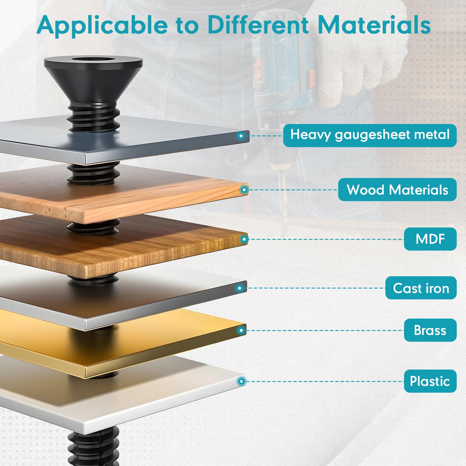 - 4. Countersunk head design + matching drill bits: Flat Head structure ensures that the screws are flush with the surface of the plate after installation, beautiful and no protrusion; 7/32 inch (5.5mm) drill bit is included, which is easy to pre-drill holes to match and enhance the installation accuracy.
