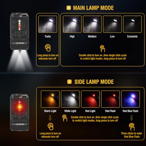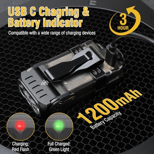BORUIT V15 LED Small Powerful EDC Flashlight with Warm White Red Light,Bright 1200LM USB C Rechargeable 10 Modes Mini Pocket Keychain Flash Light with Clip,IP67 Waterproof,80¡ÆHead Swivels,Tail Magnet