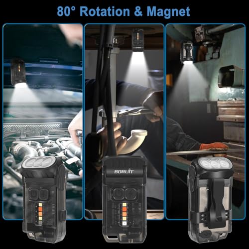 BORUIT V15 Small Flashlight Powerful Super Bright with 80¡Æ Swivel Head, Clip Magent Warm Red Blue COB Light - Mini Pocket Keychain EDC Flashlights USB Rechargeable IP67 LED Flash Light