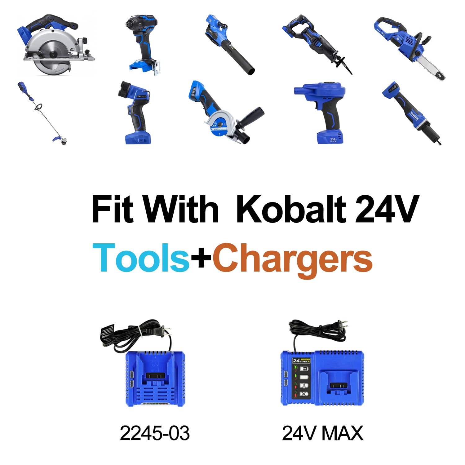 - ✅【Wide Compatibility Includes OEM 24V Chargers】Batteries for kobalt 24 volt battery are compatible with kobalt 24V series: KB624-03/KB524- 03/KB424-03/KB224-03/KB124-03/0673802/1051230 battery. Perfect fit for kobalt XTR 24-Volt Max chargers KRC 2490-03 / KRC 2404-03, great for kobalt 24V cordless circular saw brake, die grinder, string trimmer, router, angle grinder, oscillating tool, reciprocating saw, impact wrench, handheld planer, leaf blower, impact driver, jigsaw, circular saw, hammer drill