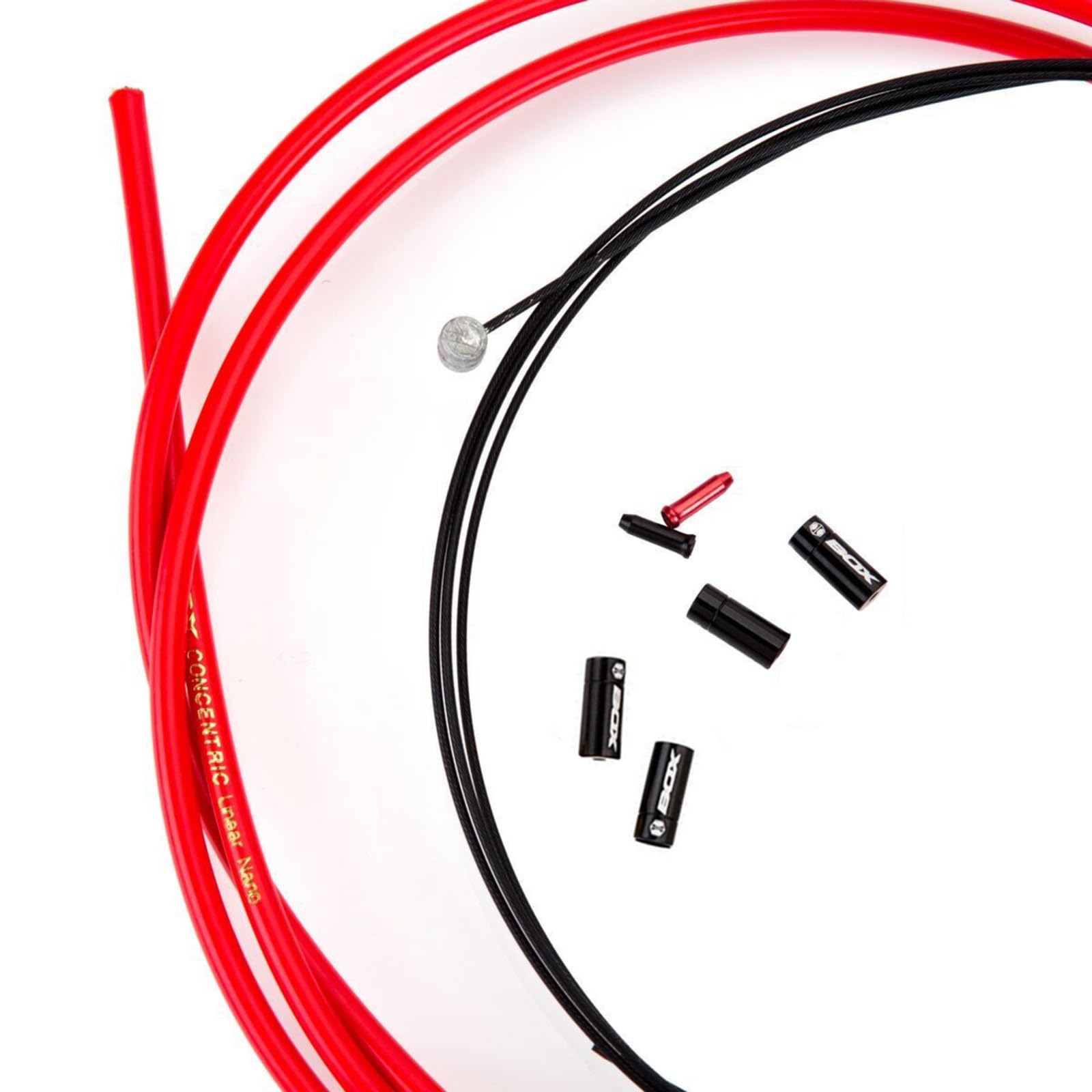 - 🔹 INCLUDED COMPONENTS: Box One Bicycle Brake Cable Kit includes 79 inches of concentric linear housing, a black PTFE-coated nano cable and four alloy Kollars ferrules to minimize cable drag and ensure precise brake response and One color-matched and one black alloy Bike Cables end caps.